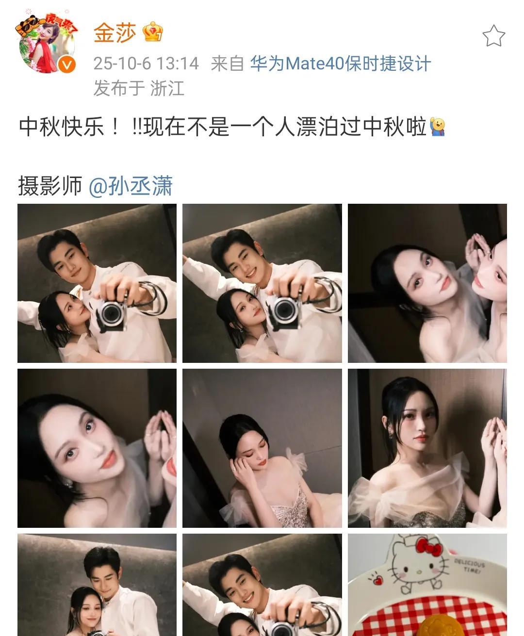 金莎中秋节晒与男友孙丞潇合影,并甜蜜配文:中秋快乐!现在不是一个人漂泊过中秋啦!