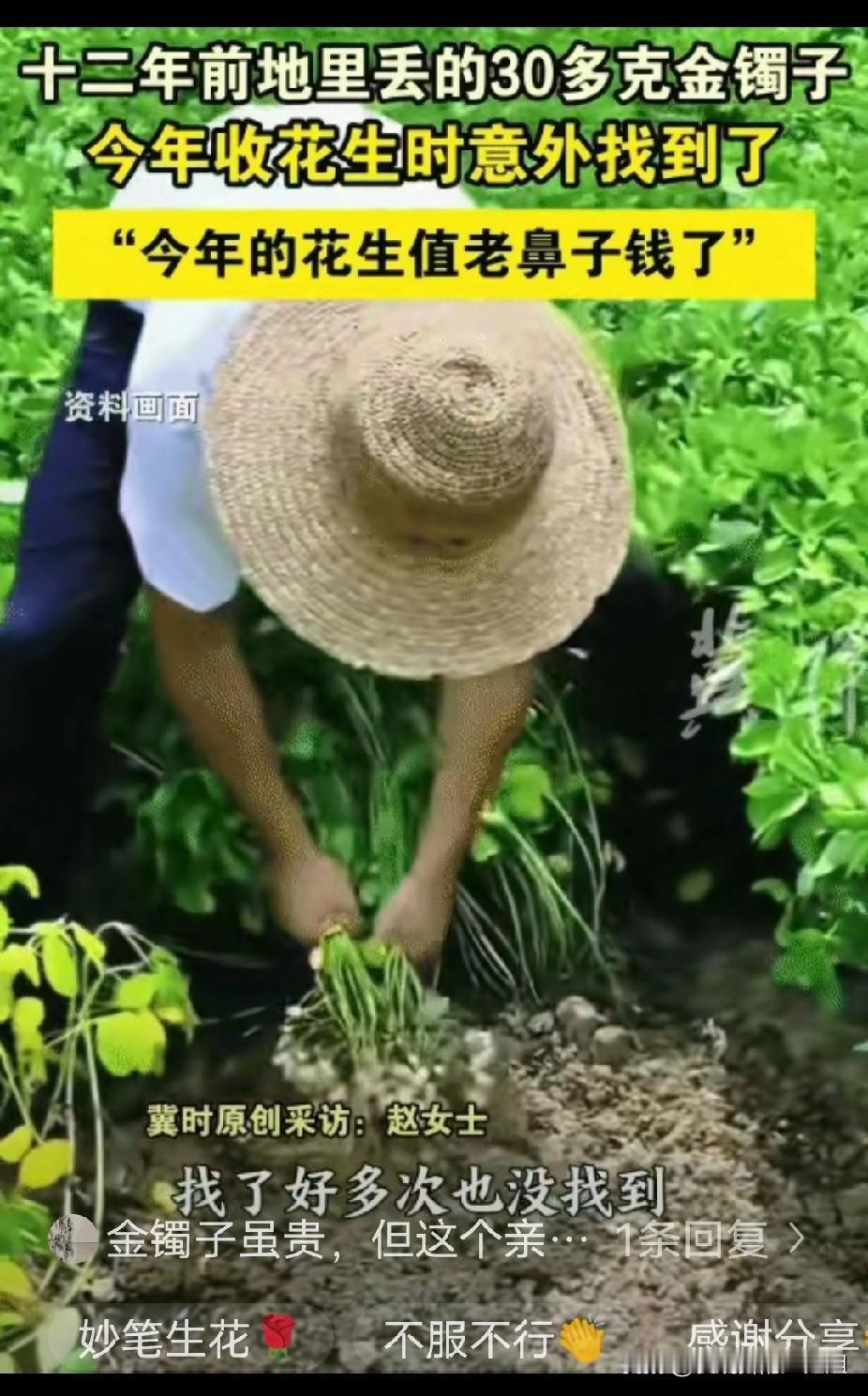 万万没想到!河北唐山,女子的姥姥12年前在花生地里丢30多克金镯子。今年收花生时