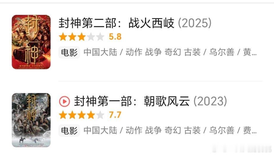 乌尔善封神系列,1票房26e+,2票房12w+