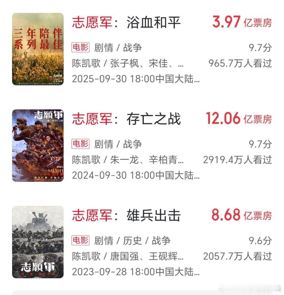 陈凯歌志愿军系列: 票房第二部最高,口碑算维持的不错但是票房越来越乏力