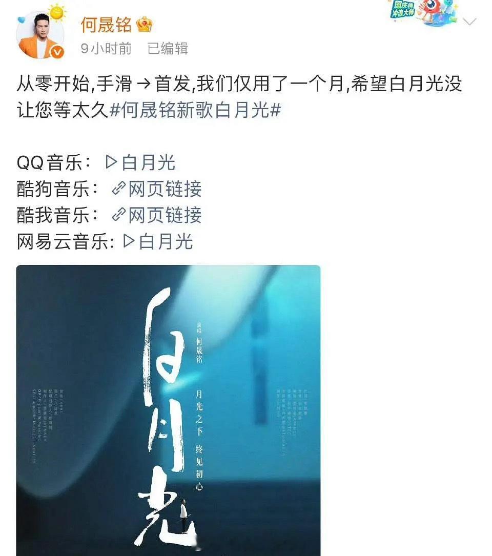 何晟铭发布新歌《白月光》,动作挺快的,热度不蹭白不蹭🙉