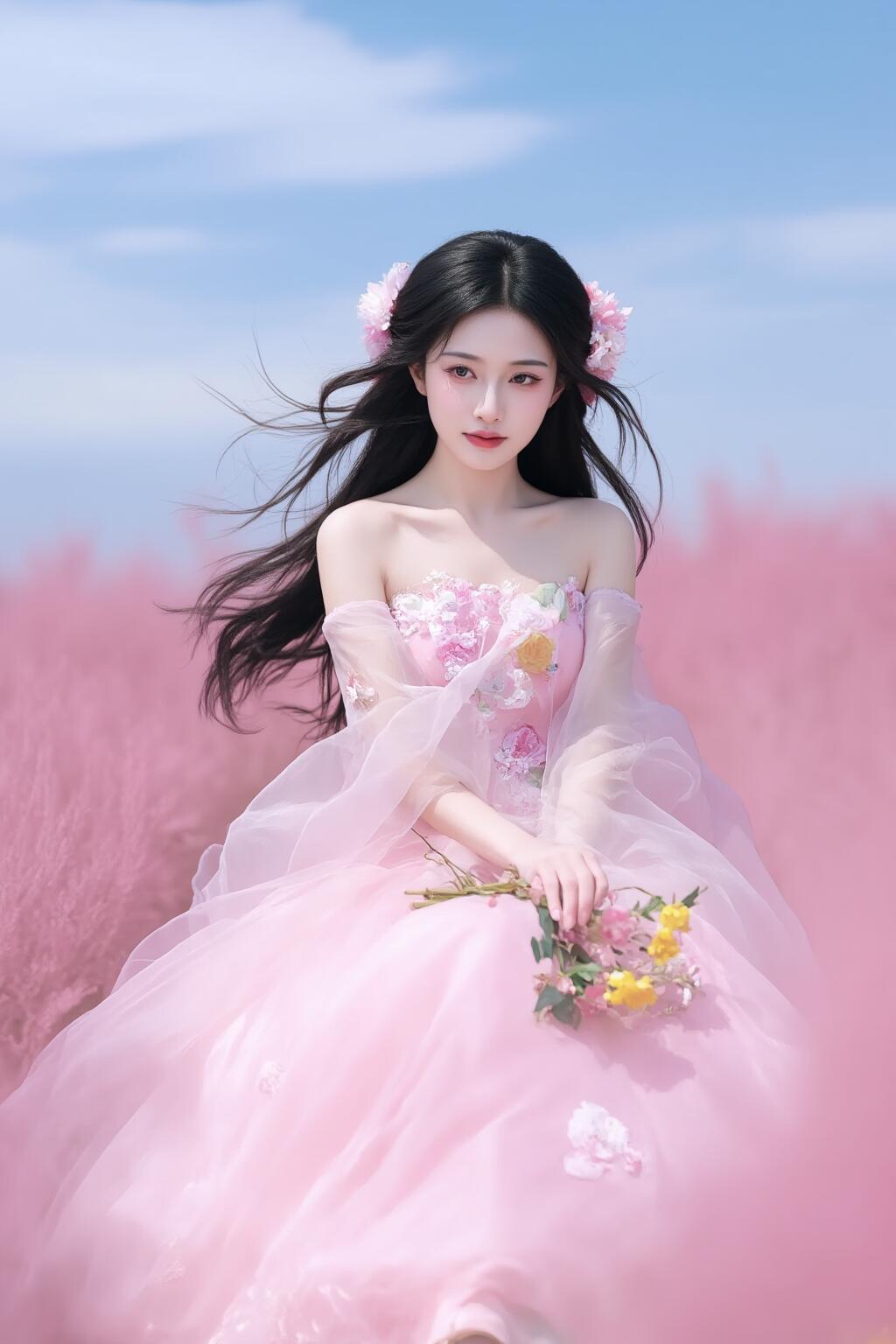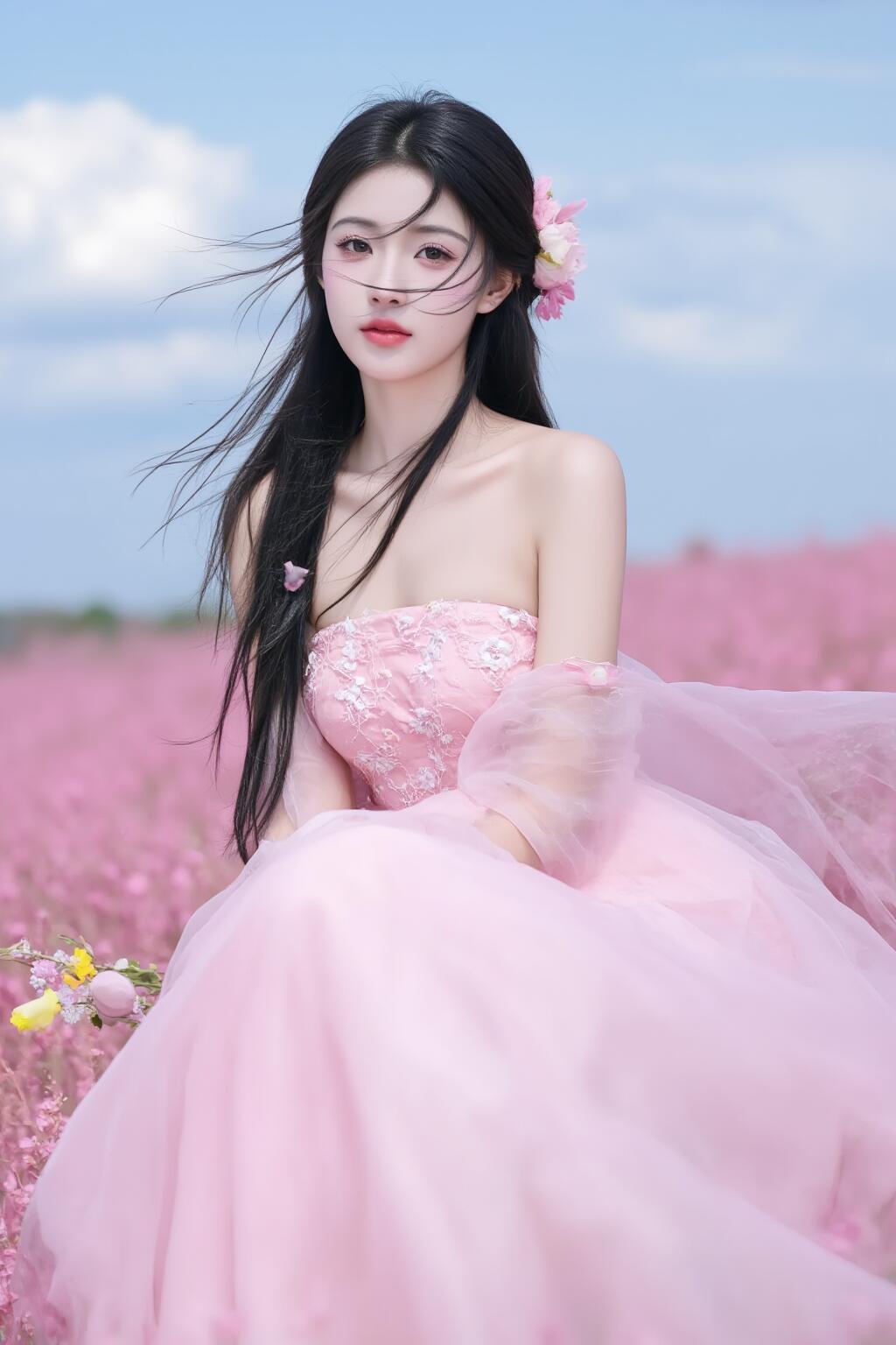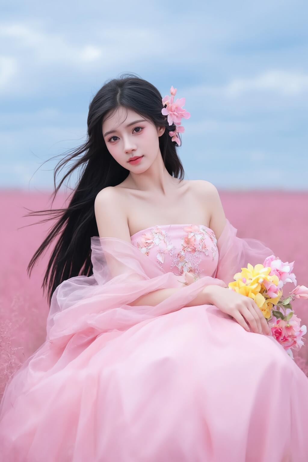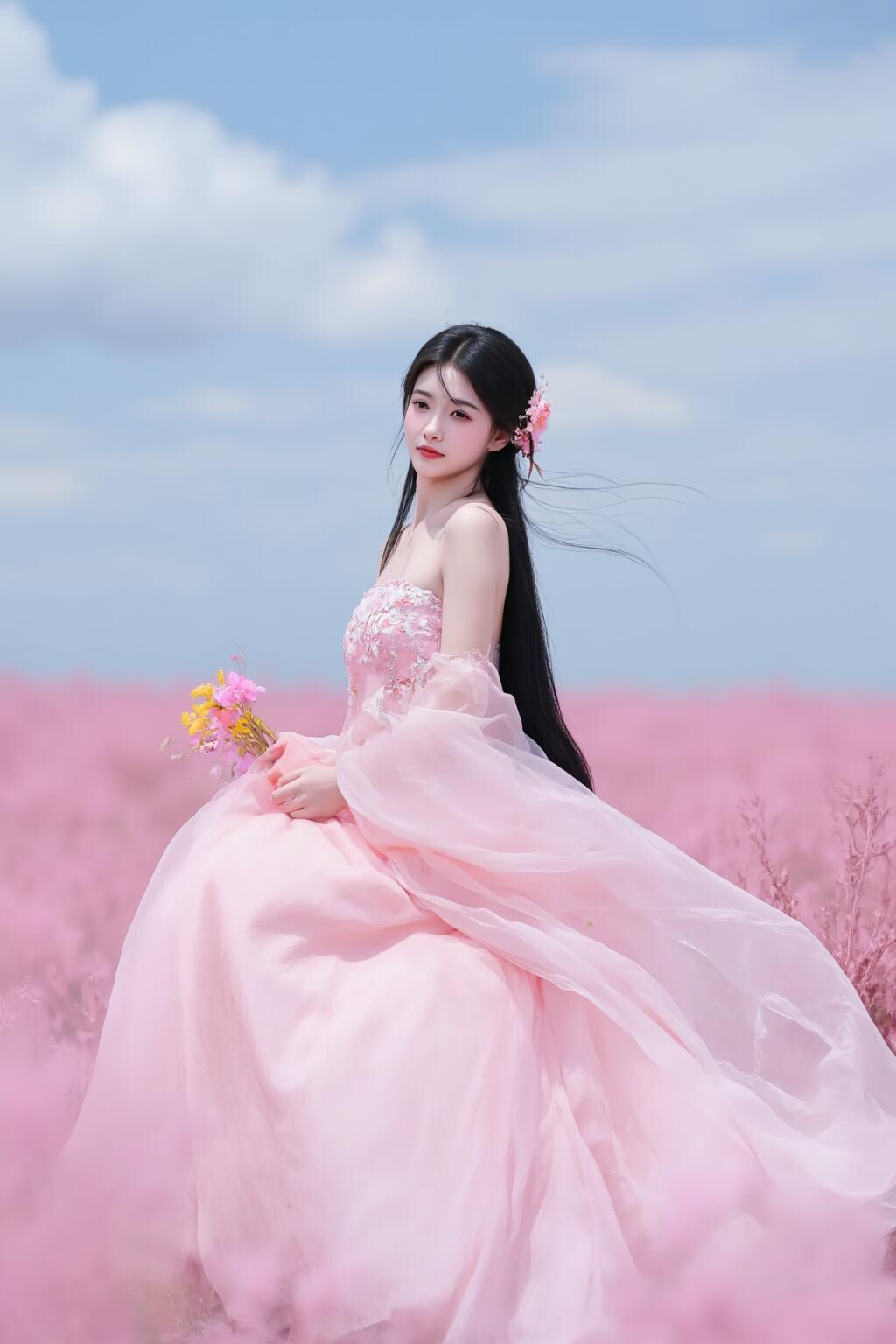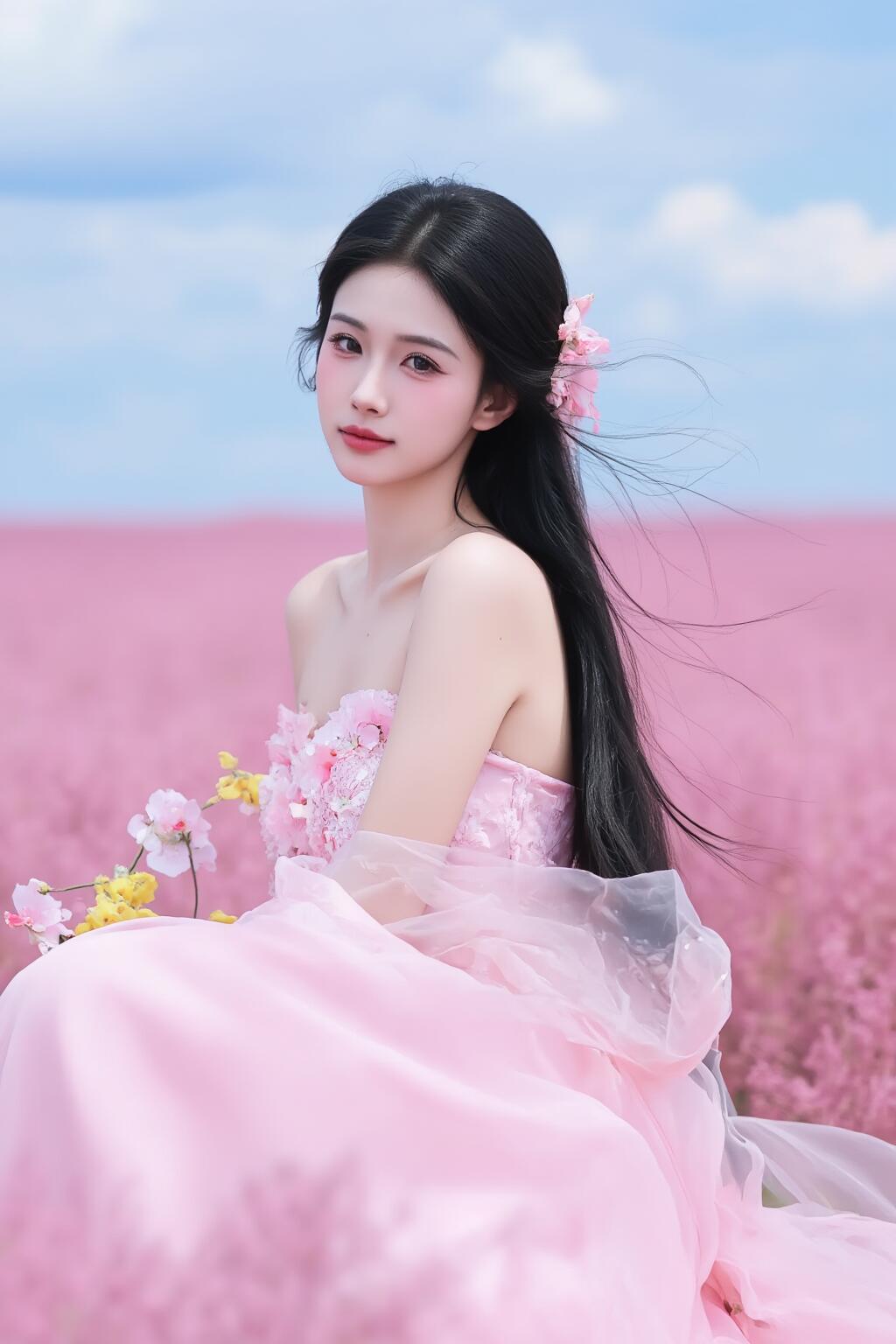 梦幻粉裙少女粉裙仙女花海中的仙子