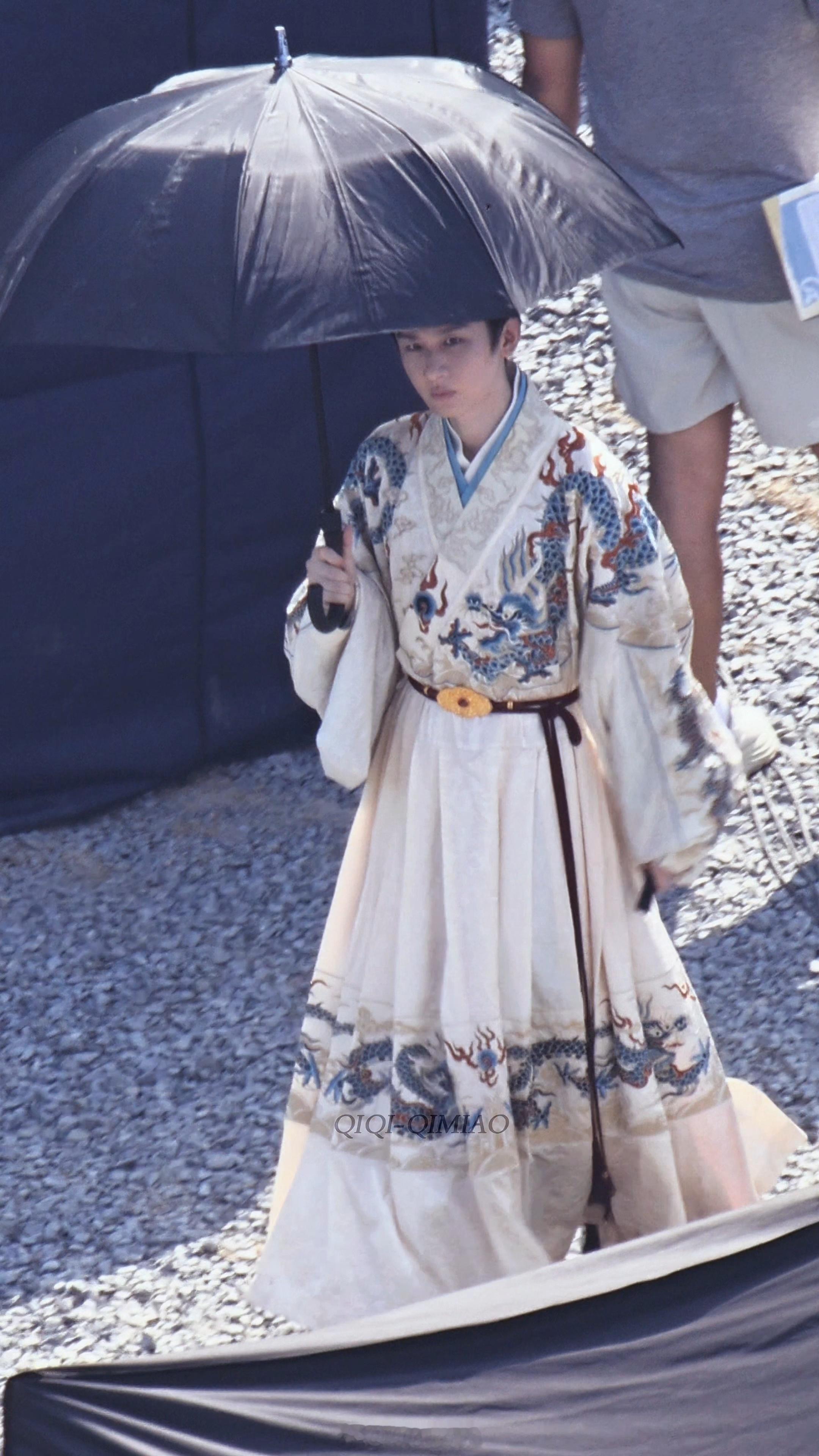 两京十五日成毅蓝白刺绣华袍造型路透来了!好贵气的feel![期待]成毅拍摄地成了