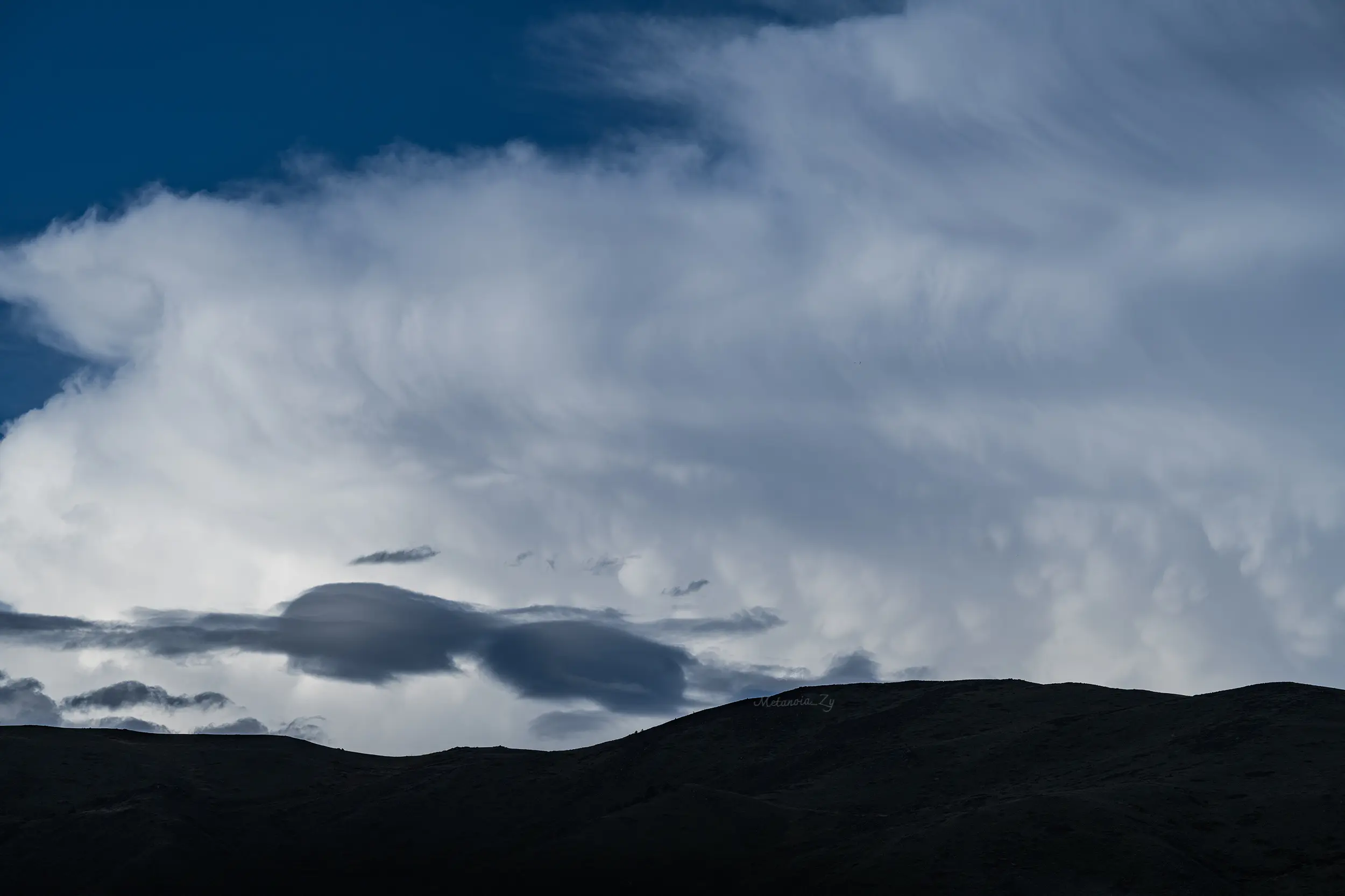 深邃的夜幕下,高空的气流掀起一片云瀑,碎钻般的星辰托着银河在地平线上升...