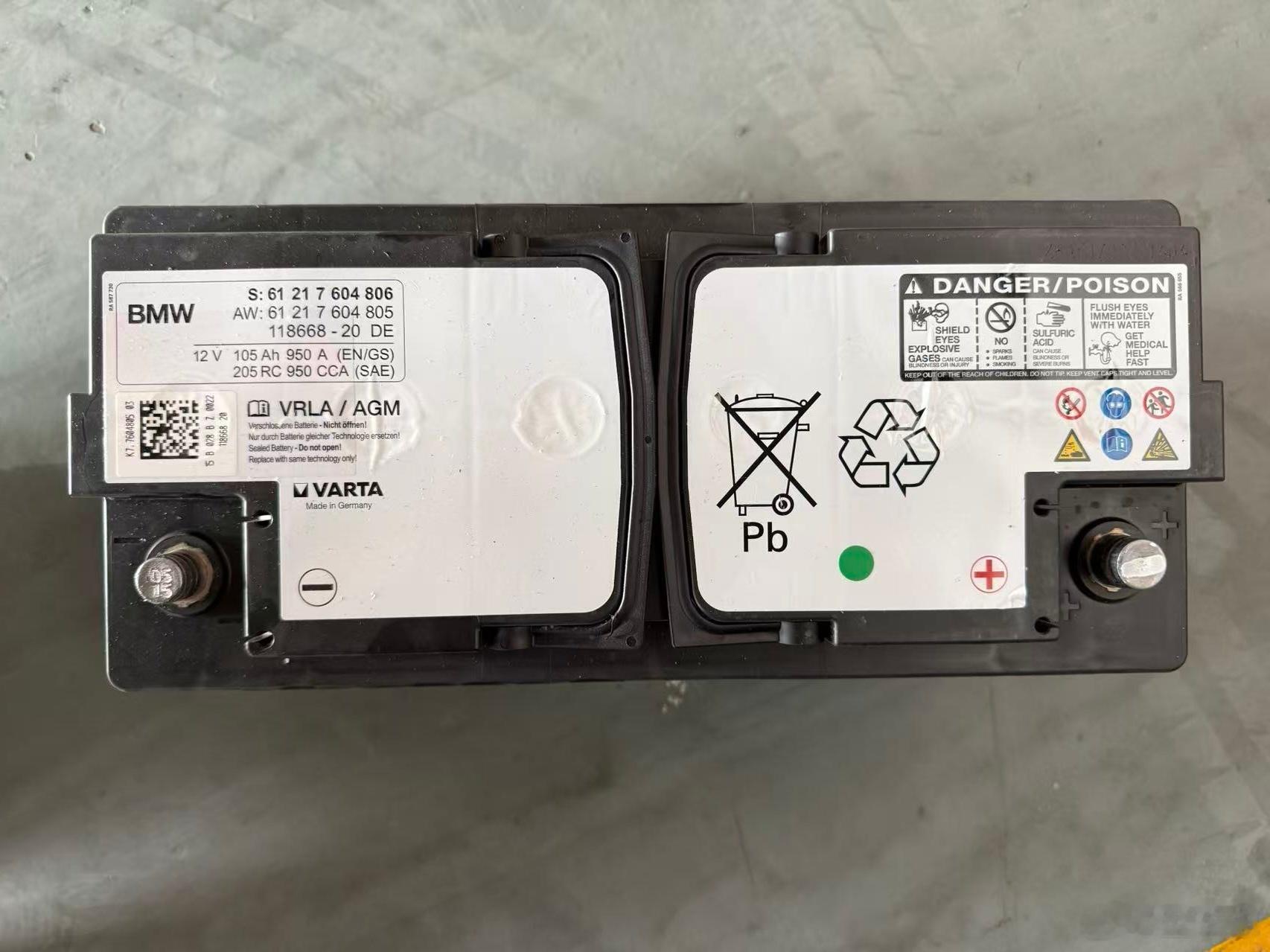 最近宝马5系[超话]F18 535Li因为总放着不开,电瓶健康度肉眼可见地在掉。上次保养检测了一下,只剩17%,果断决定换掉。这车原装电瓶是德国原产瓦尔塔(VARTA)AGM 105Ah 950A,支持启停和能量回收系统。这块电瓶从 2015年出厂一直服役到现在,整整10年才第一次更换。质量真是杠杠的。