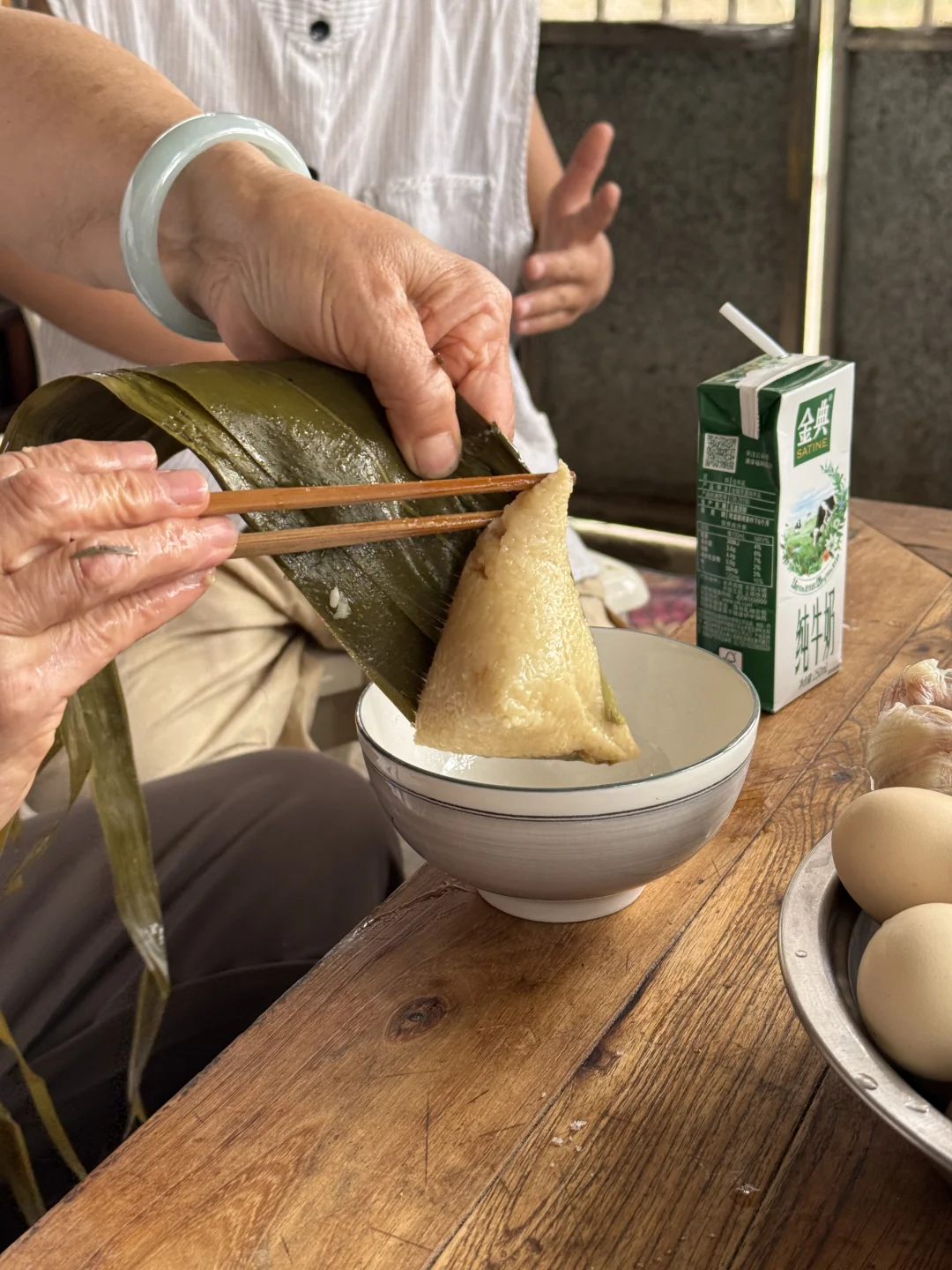 他们早早会买好粽叶,亲自泡糯米,备料,包粽子