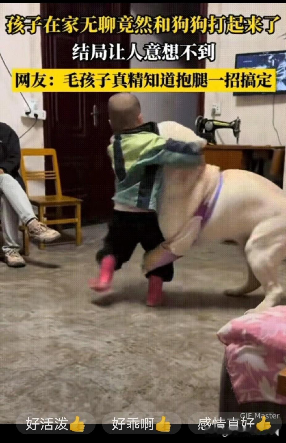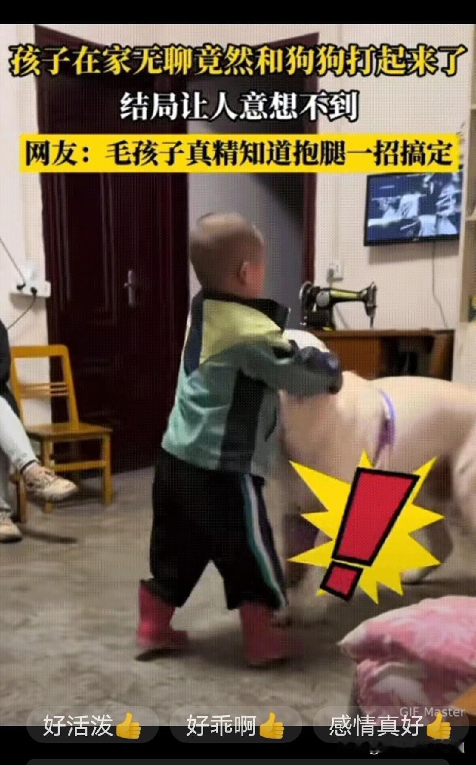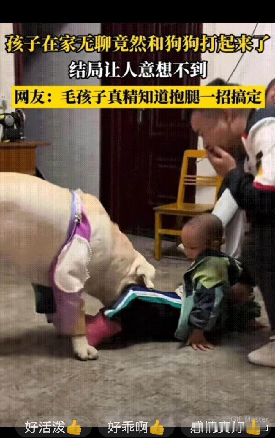笑不活了!湖北,萌娃在家无聊竟然和自家狗狗打了起来,狗狗很胖乎,萌娃在狗狗面前很不显眼。但他毫不示弱抓住狗狗就是一顿乱捶打,狗狗也很精明表现的不慌不乱一招直接搞定他。直接抱住萌娃的腿把他抱摔在地上,这结局让全家人哭笑不得!网友:毛孩子真聪明知道抱腿一招搞定 这场面让人想起山东潍坊那个两岁娃,穿着开裆裤就把大黑狗压在地上,狗狗侧躺着一脸无奈。湖北这个萌娃显然遇到了更机智的对手——胖乎乎的狗狗没选择硬扛,而是用抱腿摔展示了一把四两拨千斤的智慧。狗狗被小主人捶打时露出的那种忍耐表情,在贵州某个家庭也出现过:小女孩使劲扯狗毛,狗狗转头瞥见主人后立刻收敛凶相,默默把头转回去继续承受“蹂躏”。动物对幼崽的包容度确实超乎想象,就像云南那头小牛,每天安静陪两岁萌娃晒太阳,还用舌头轻轻舔舐孩子表达亲昵。 不过幽默归幽默,这种“人狗大战”背后藏着安全隐患。有网友直言家长心太大,毕竟动物被惹急时可能失控。山东那位母亲在狗狗怀孕后立刻将孩子与狗分开的做法就挺明智。江苏高邮发生过更惊险的:护食的狗狗被孩子抢食时发出低吼,幸好家人及时制止才避免伤害。别看狗狗平时温顺,广西贵港那个被扯尾巴的小狗气得一整天背对小姑娘,用沉默表达抗议。 这场抱腿摔跤赛倒像是特殊的成长课。萌娃通过互动学会观察动物反应,狗狗也在磨合中掌握与小主人相处的分寸。就像《小手牵小狗》节目里阿拉蕾照顾幼犬时展现的责任感,孩子与动物正确互动能培养爱心和观察力。新疆有个小女孩每天给猫咪讲课复习知识,猫咪蹲坐着像真能听懂似的——这种跨物种的陪伴,比任何早教玩具都来得生动。 家长的态度才是安全的关键。湖北这家人没有惊慌打断而是哭笑不得地记录,说明他们对狗狗性情有把握。但更保险的做法是像专家建议的:教孩子用抚摸代替捶打,用喂食代替拉扯,让狗狗成为守护者而非玩伴。毕竟江苏那个陪写作业的猫咪能安静守在桌边,武汉那个闯祸后找狗求助却遭遇“秒怂”的萌娃,都证明动物与孩子能建立更温暖的关系。 各位读者你们怎么看?欢迎在评论区讨论。