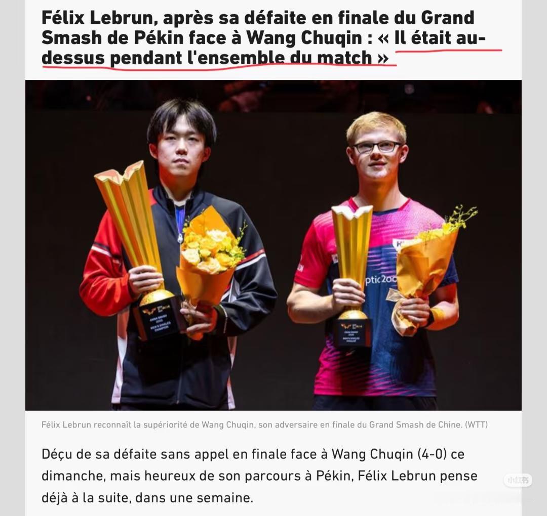 小布拿了亚军也很开心呢。 这次中国大满贯赛,在半决赛结束时,小布采访时说想把冠军奖杯带回法国,不过决赛遇到王楚钦,王楚钦是真的掌控了比赛,没有给小布一点机会,王楚钦是4-0战胜小布,夺得男单冠军。不过小布拿到亚军也很厉害了,1400的大分啊,新一周小布的世界排名将会来到第五位,小布好像第一次拿这么高的分,还有那么多的奖金,这下回去可以好好玩一玩了。 小布拿到奖杯后,开心的拍照了,外协选手现在就是只要能拿奖杯,他们就很开心的。现在小布肯定也很佩服楚钦,昨晚看他一直等着王楚钦的场内采访结束,他和教练才离场,还在那给楚钦鼓掌。最主要的在北京比赛,还能吃很多美食,住的也好,还有好玩的地方。 赛后法国媒体也发文了,小布在采访中说:“我感觉他很早,很强势的抓住了机会,这让我很难脱身,我有可能拿下第四局的,但是最终还是他掌控了全局,因此他完全配得上这场胜利”。昨晚小布吃了不少发 球,颁奖的时候,王楚钦还和小布握手了,小布也笑了,这就是强者之间的惺惺相惜,小布确实涨球了,也沉稳了。