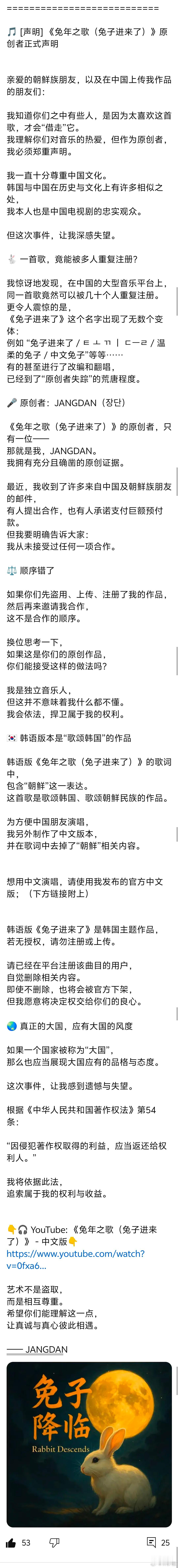 原作者JANGDAN是一个韩国人,图3,这首歌是歌颂韩国、歌颂朝鲜民族的。