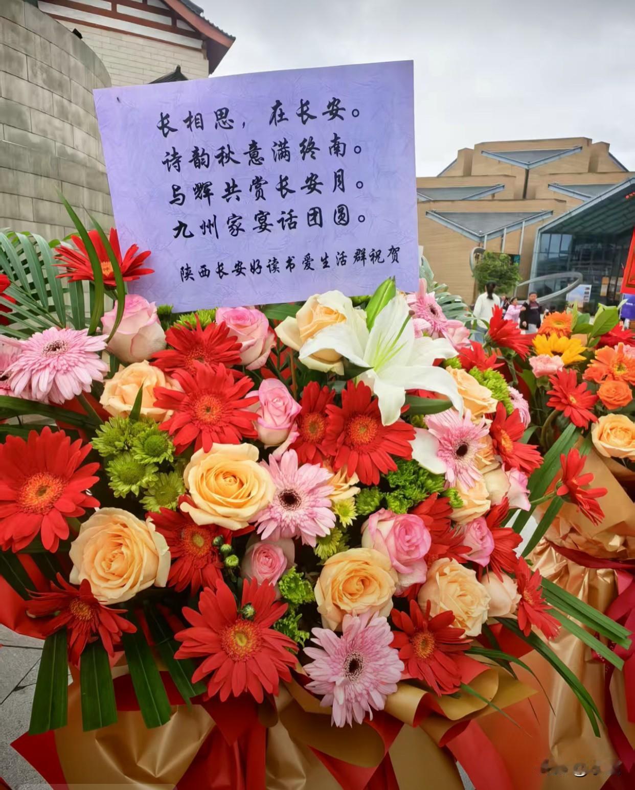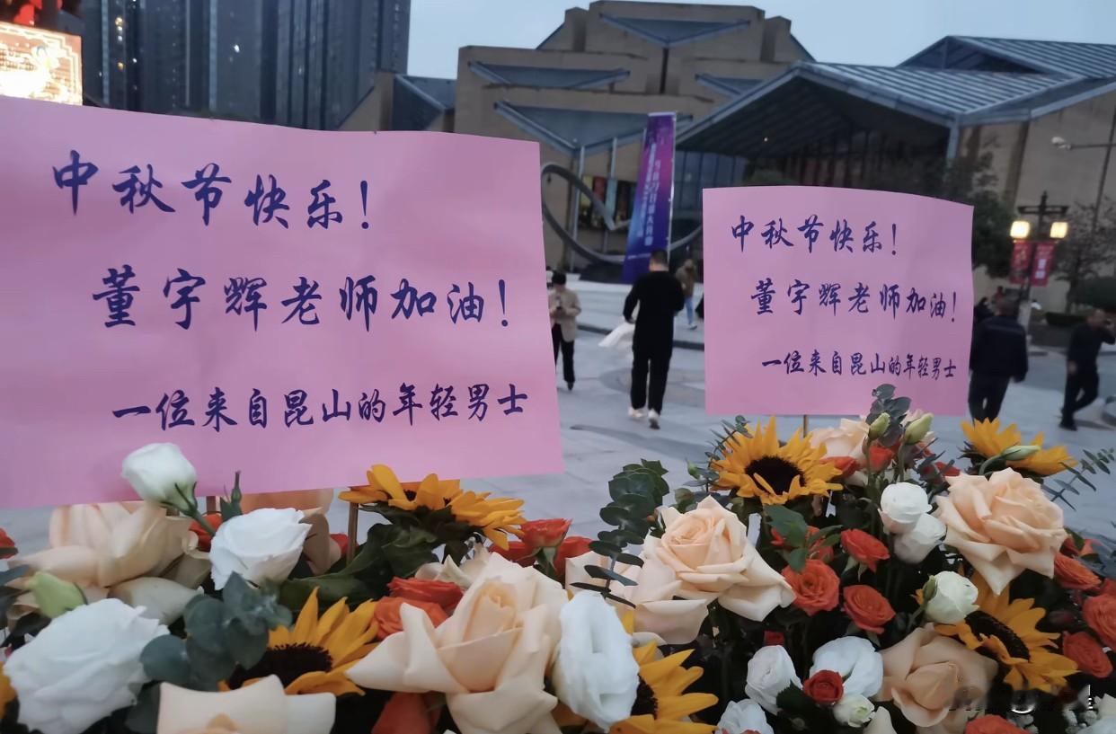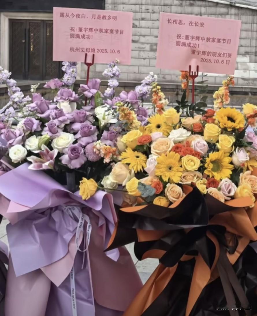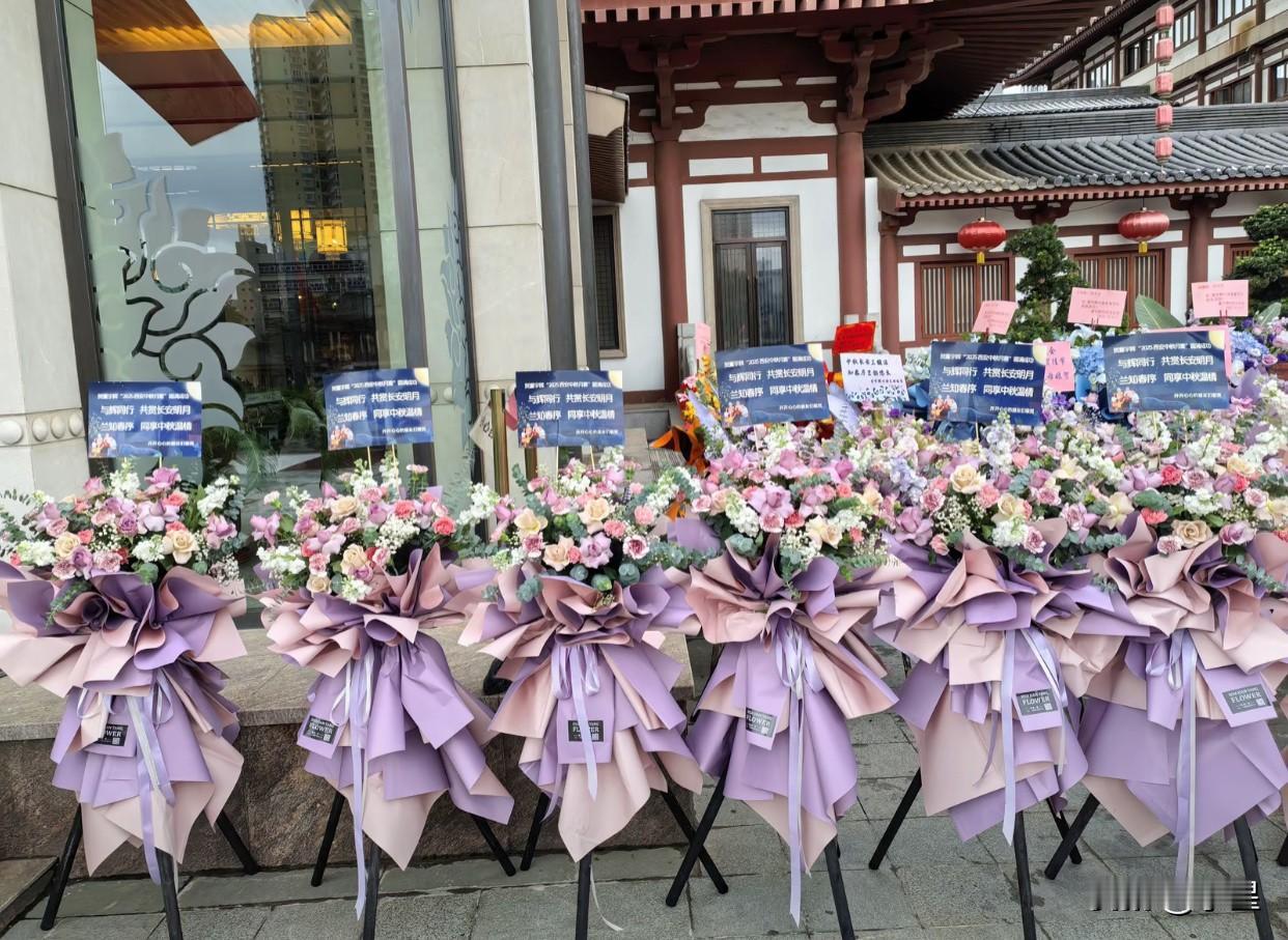 董宇辉在西安的中秋家宴外 全是爱辉区的朋友们送的花篮 演出场馆门口摆的满满当当