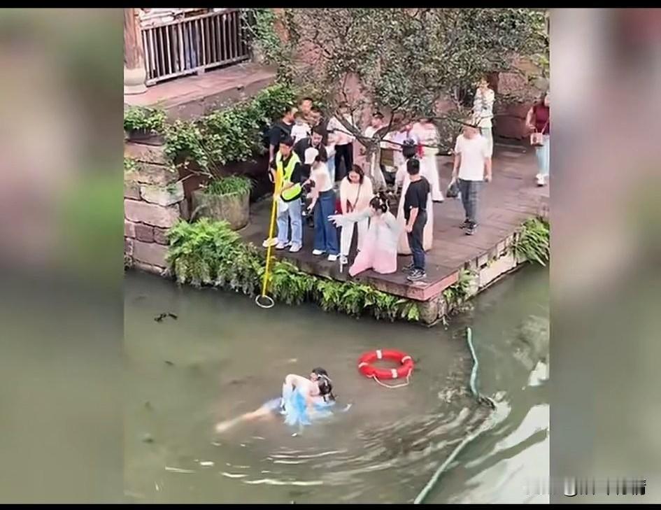 李庄古镇女子穿古装拍照不幸落水, 这让四川宜宾的李庄古镇彻底火了, 周围游客倒是