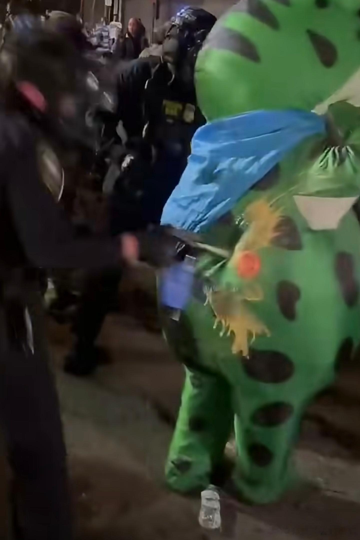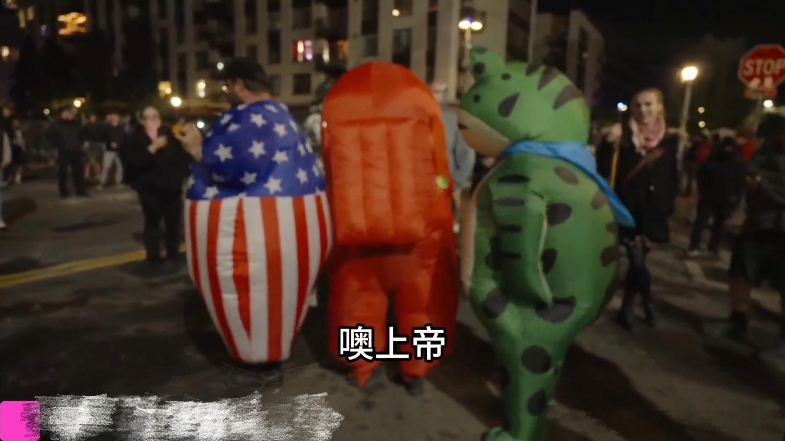 随后美国波特兰示威现场又出现了大量充气人偶协同整活,场面混乱到令路人大呼OMG,整个就是一大型无厘头抽象晚会!