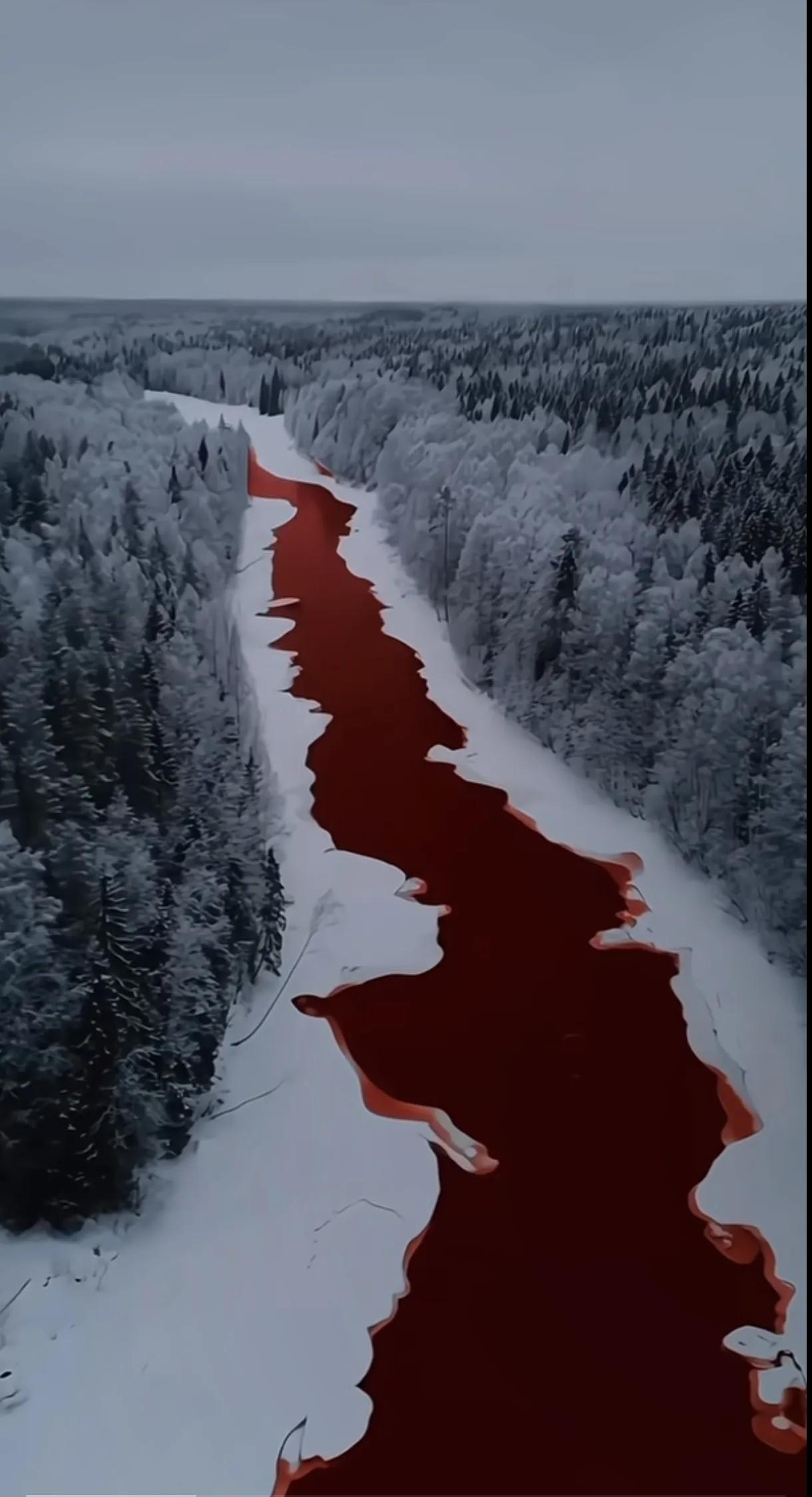 太壮观了,这就是西伯利亚的血河——克麦罗沃州的伊斯基蒂姆卡河。每年5-6月融雪期,这条河会化作18公里长的“赤流”,在雪原上撕开一道刺目的痕迹,世居此地的埃文克人称之为“恶魔的伤口”,祖辈告诫绝不可取水捕捞。 这并非超自然现象:河床下的寒武纪含铁页岩富含二价铁,融雪水渗入地下溶解铁元素后,接触空气瞬间,就氧化成红色氢氧化铁胶体,河底的嗜铁微生物还会加速这一过程,让河水变成红色。 更特殊的是,这条河堪称28亿年前地球“铁锈海洋”的活体模型——铁氧化消耗大量氧气,使下游水体溶解氧趋近于零,形成天然“死亡河段”,为科学家研究远古生命演化提供了样本。