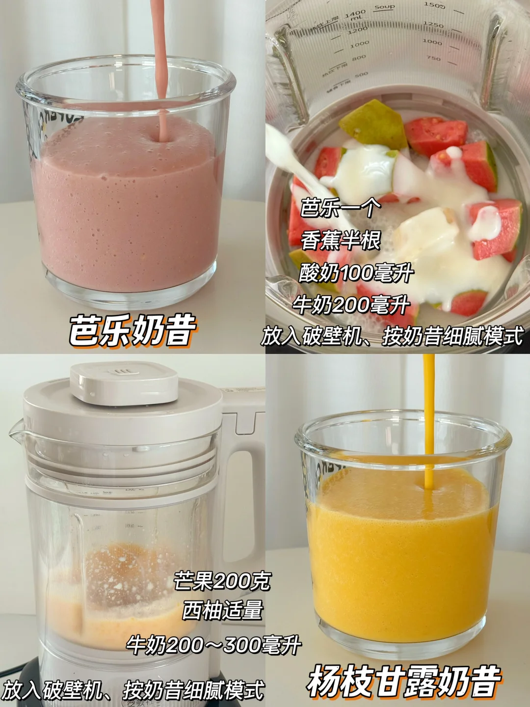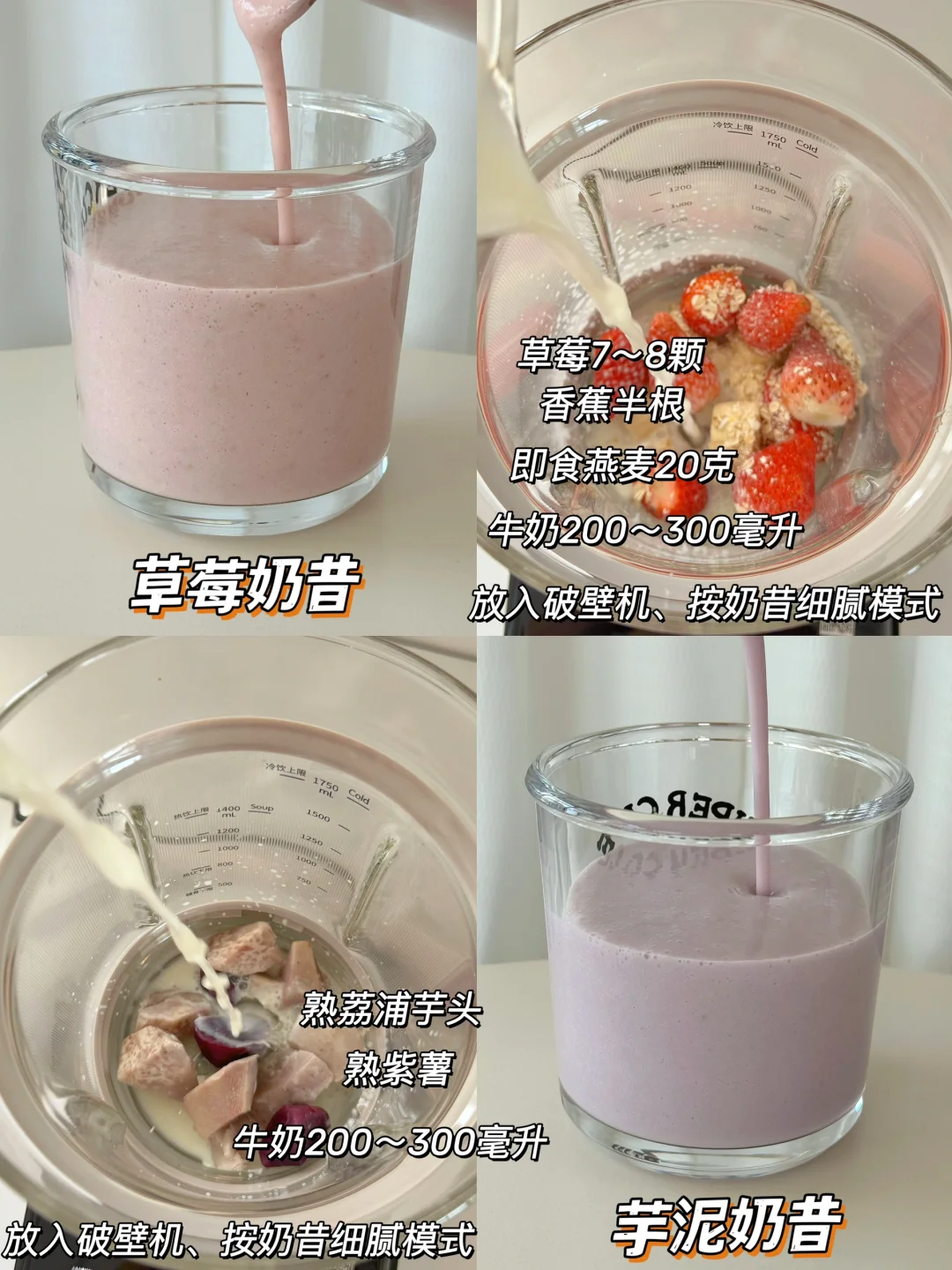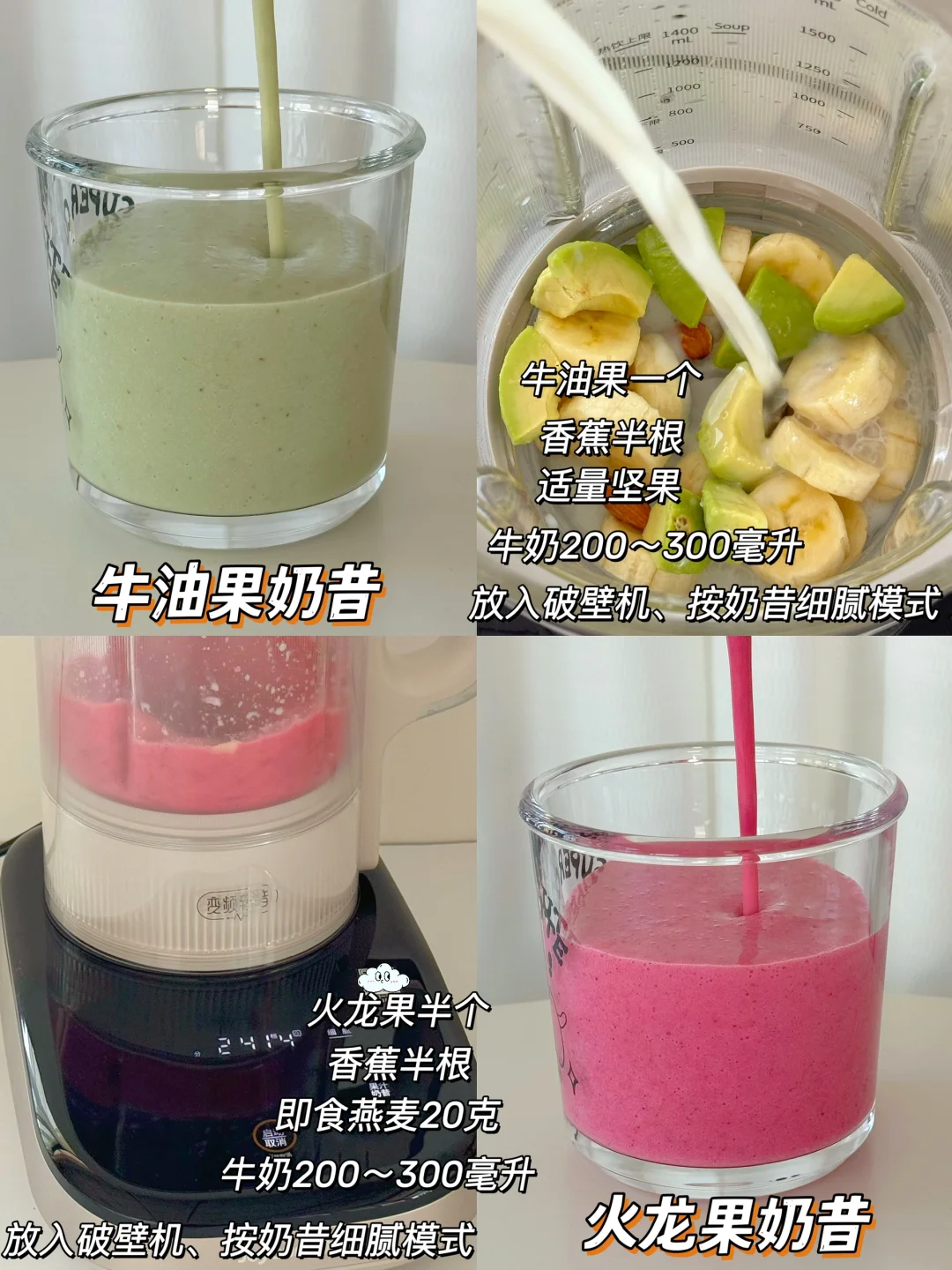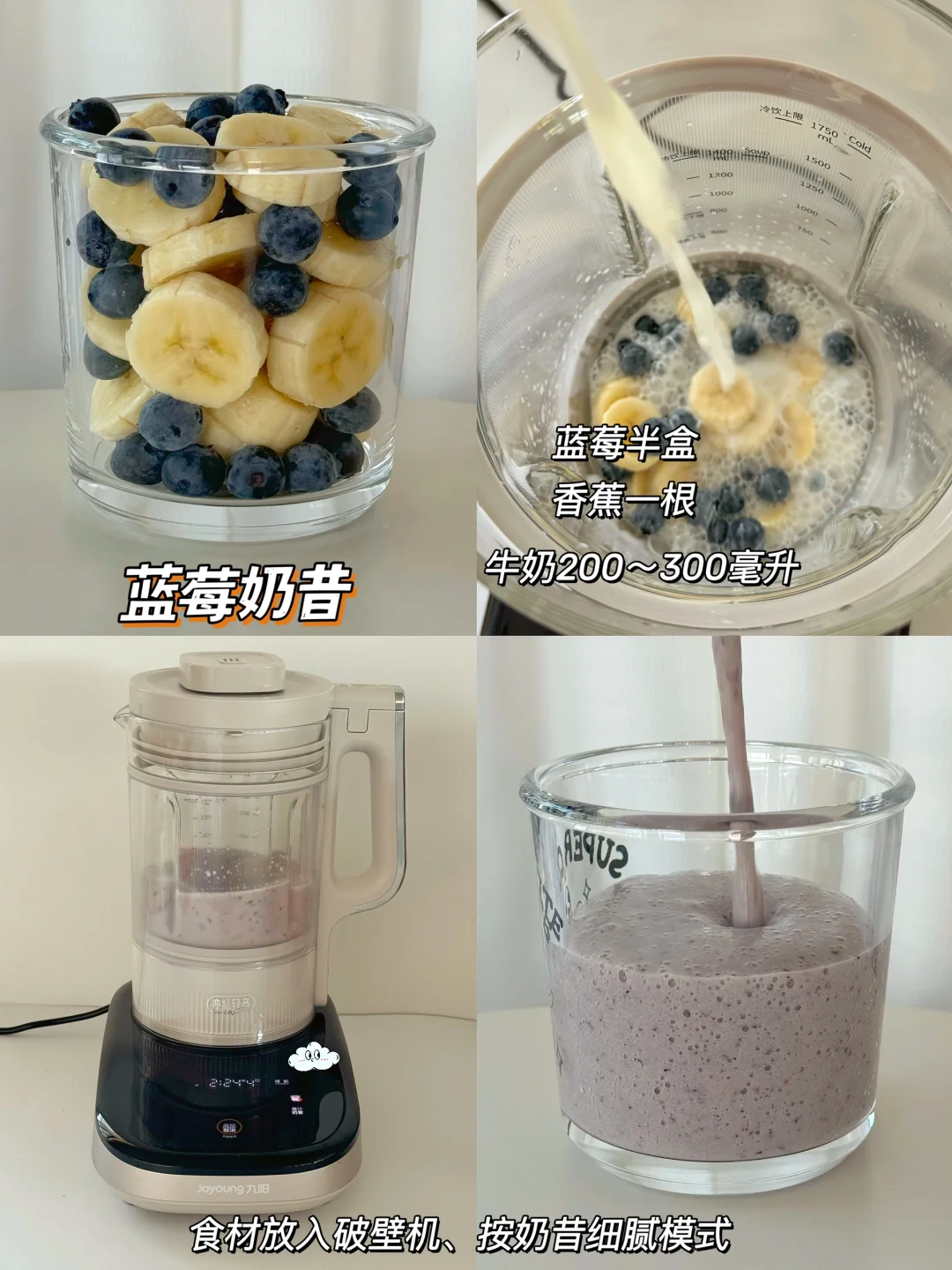 🌹食材洗净放入破壁机,加适量奶选择功能键即可,真的超简单~