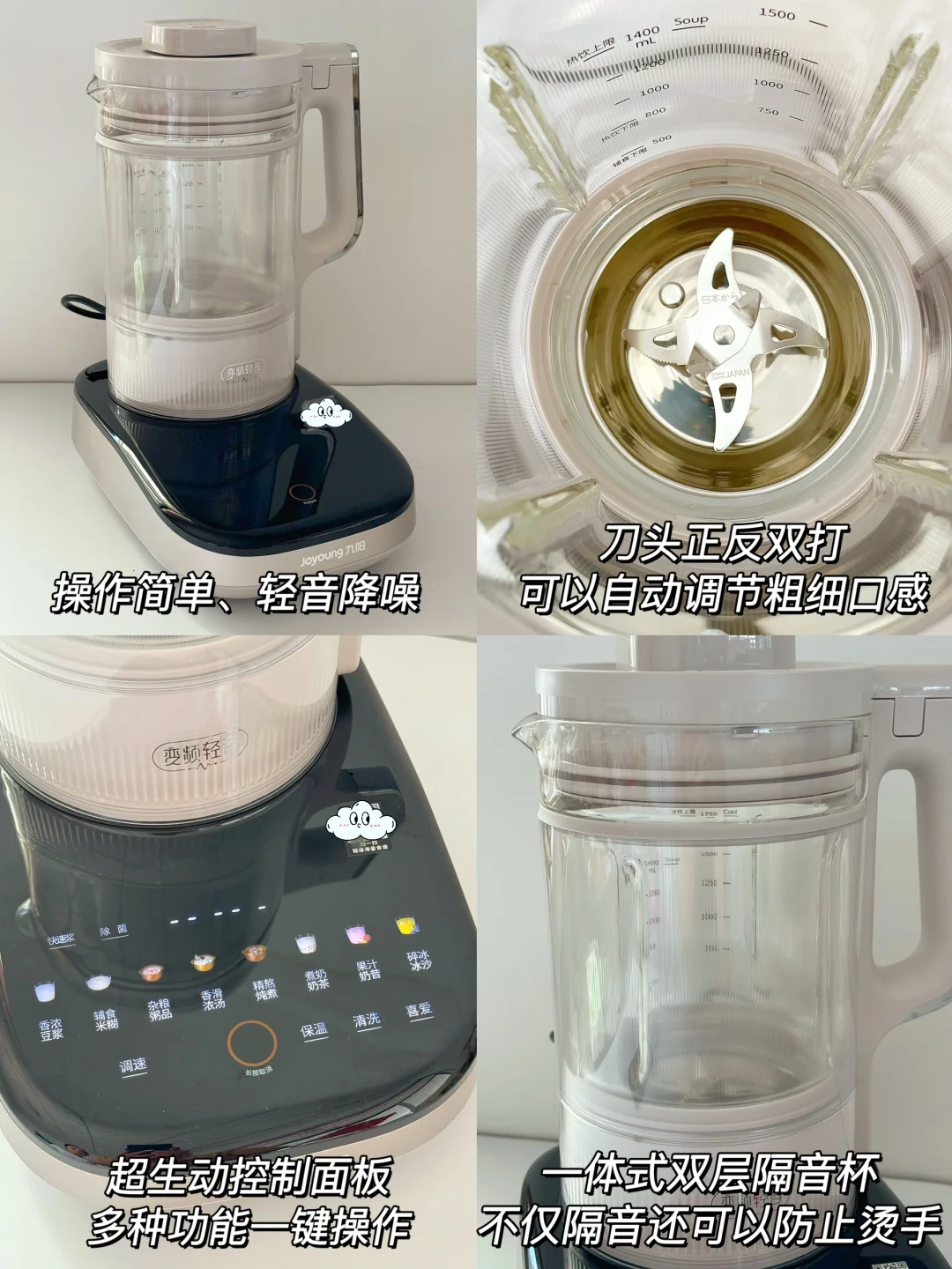 ❤️如果怕破壁机吵或者打出来口感不好的话,可以试试我用的这款九阳变频轻音破壁机,内置的是变频无刷轻音电机,没有传统碳刷电机的尖锐噪音,磁力驱动下的声音柔和安静,加上一体式双层隔音杯设计,真的安静得不像破壁机~这下无论什么时候打饮品都不怕吵到家人邻居了!随时都能拥有好喝饮品!