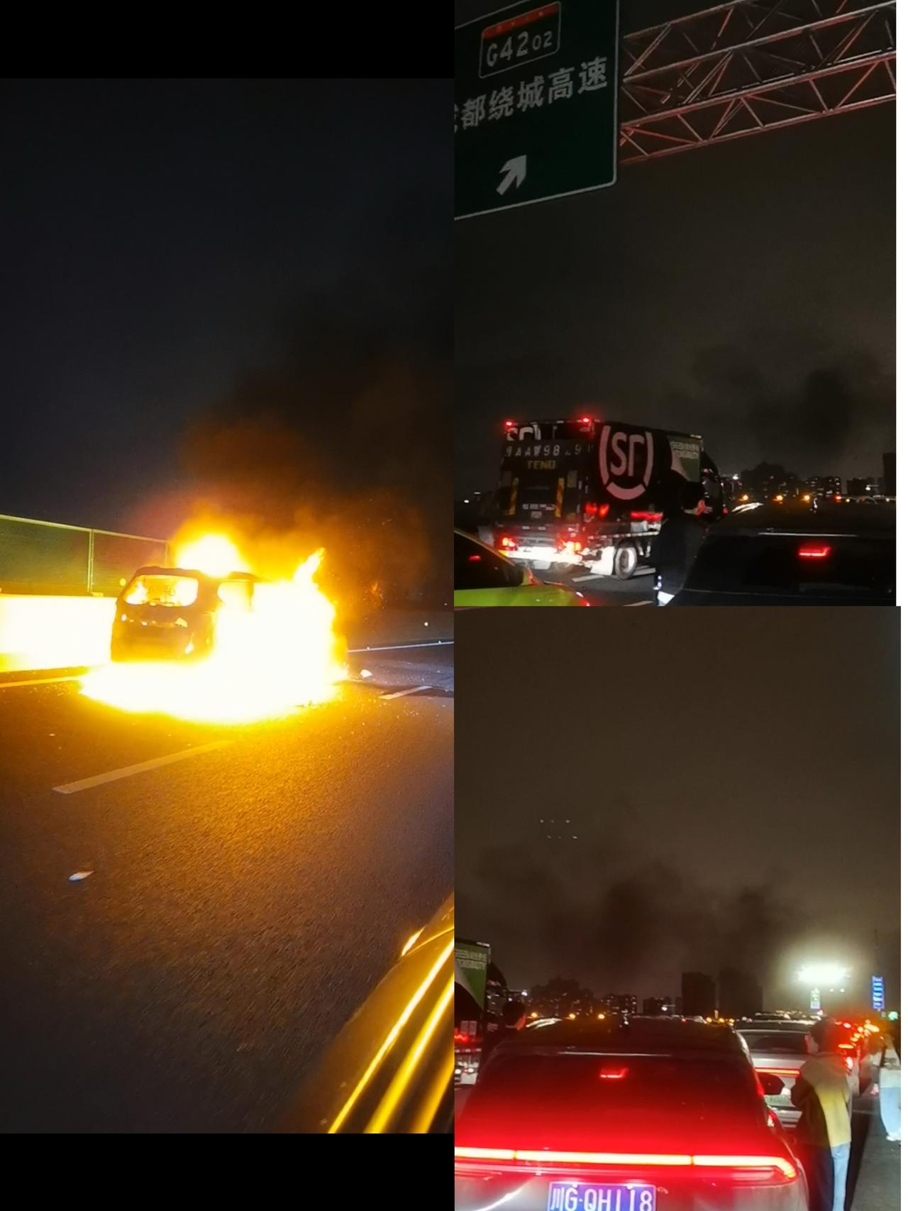 第一次这么近距离亲眼见证汽车自燃,好恐怖啊! 今天10月6日晚上8点,我们一家人从老家回成都,路过成都绕城高速入口处,发现一辆汽车自燃了,堵了一个多小时的车,我们经过时,那辆车还在燃,冒出熊熊大火和浓烈的刺鼻的青烟,不知道有没有人员伤亡,真担心车上人员啊。 出门在外一定要注意驾驶安全啊,出远门前一定要对爱车车做个全面检查和保养,大家说汽车安全驾驶和安全检查重要吗?车自燃火灾 路遇自燃车 自燃新能源汽车