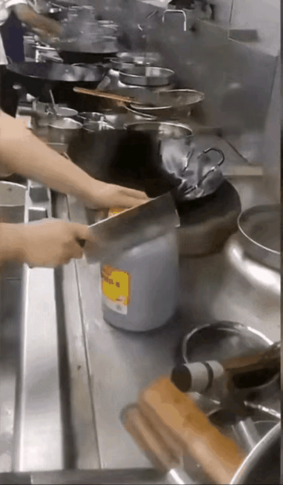 作为一个老板,这样的厨师 应不应该请? 大家看看这个视频,真的是很气人,这名厨师开调味料罐的时候, 动作激烈粗暴。连开盖都懒得开,直接用刀将罐子砍开,结果调味料流失了一大半出去,没办法用上,造成调味料浪费, 和成本提高,大家说这样的厨师,要不要炒他的鱿鱼?如果你是老板,这样的厨师你会请吗?饭店厨师 餐饮业老板