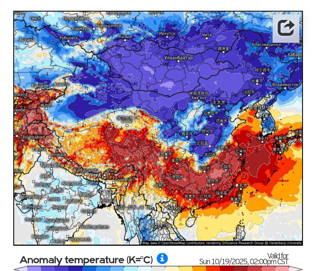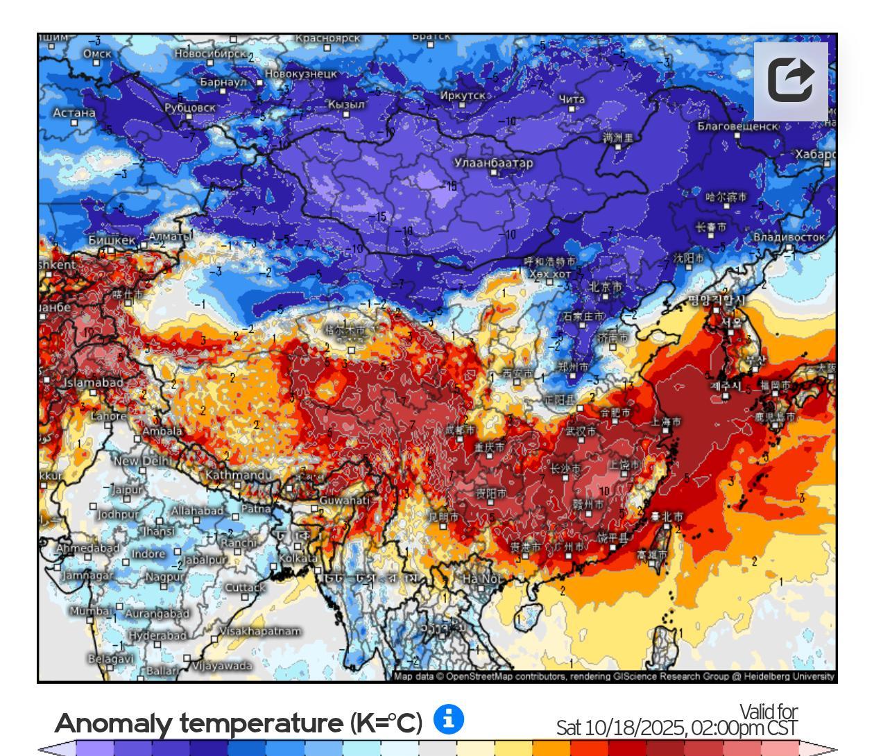 【冷空气展望】中旬中后期,冷空气要可能准备大干一场了,毅然决然要对副高发起大进攻。从形势场上看,北亚高纬度即新地岛附近有阻塞高压脊发展,并且和乌拉尔东侧暖脊逐步打通和结合在一起。而西伯利亚至蒙古高原一带有分裂的切断低涡在外强迫作用下向横槽转变发展,槽后有冷堆且增强。后续随着东北暖脊的崛起,形成典型的两高一低的形势场,也就是所谓的倒欧米伽Ω,最后横槽转竖,冷空气倾泻而下,带来猛烈降温过程。如果实现,冷空气强度可能达到1050hpa以上【强冷空气的水平】,彻底击溃副高,有望结束漫长的秋雨和高温!不过是10天以后的了,还会继续调整,静心等待