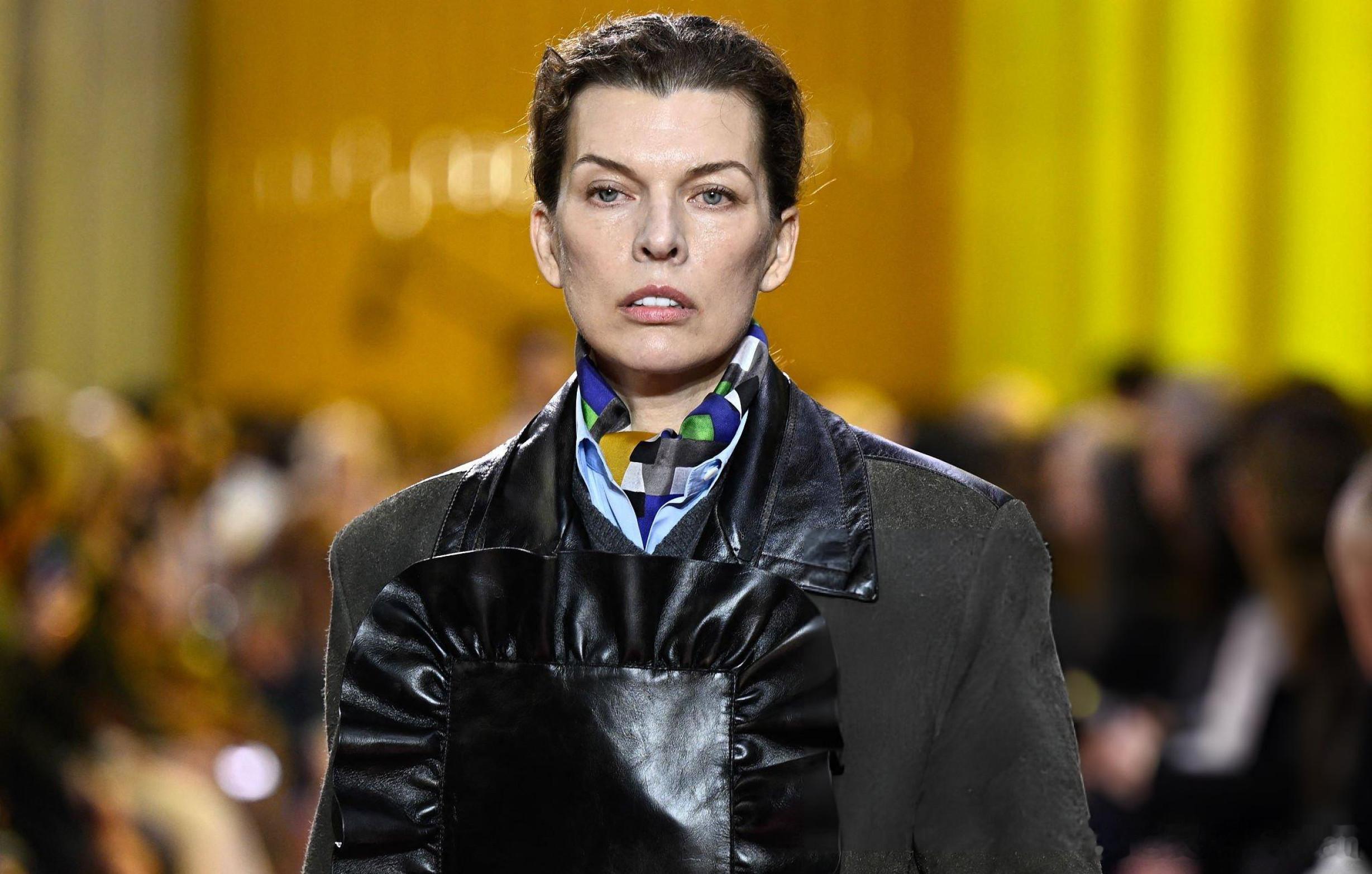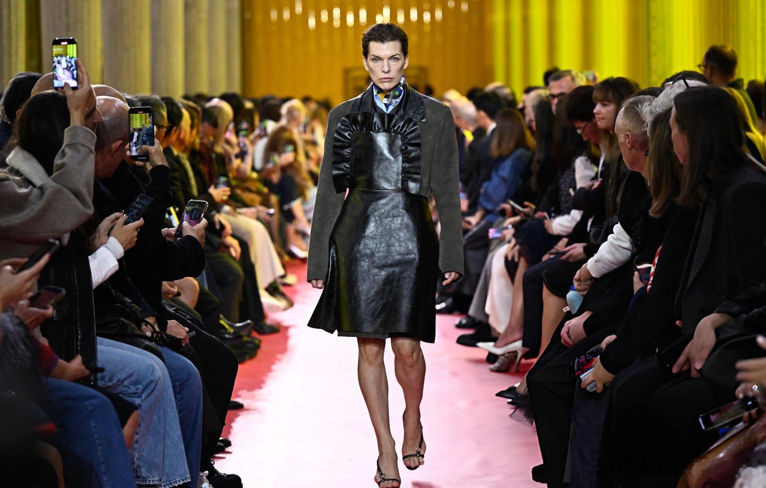 米拉回归T台!millajovovich米拉乔沃维奇在巴黎时装周期间为Miu