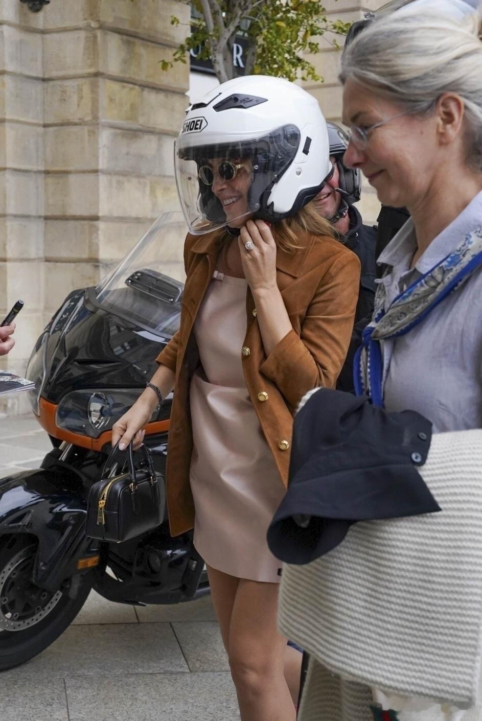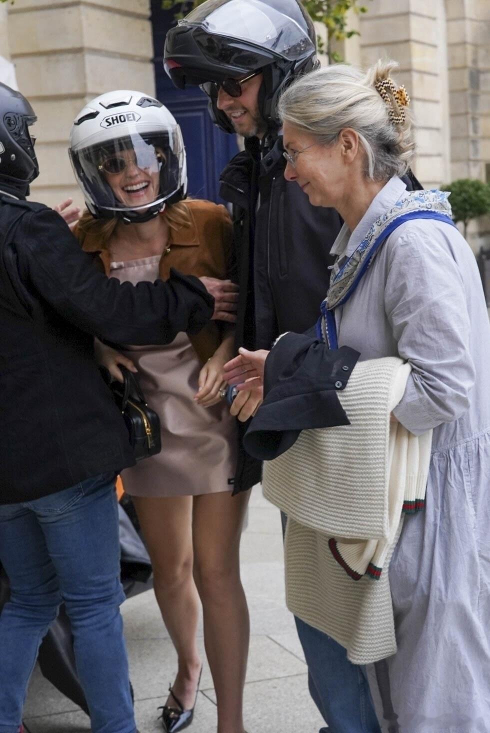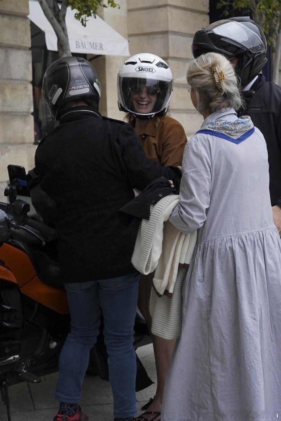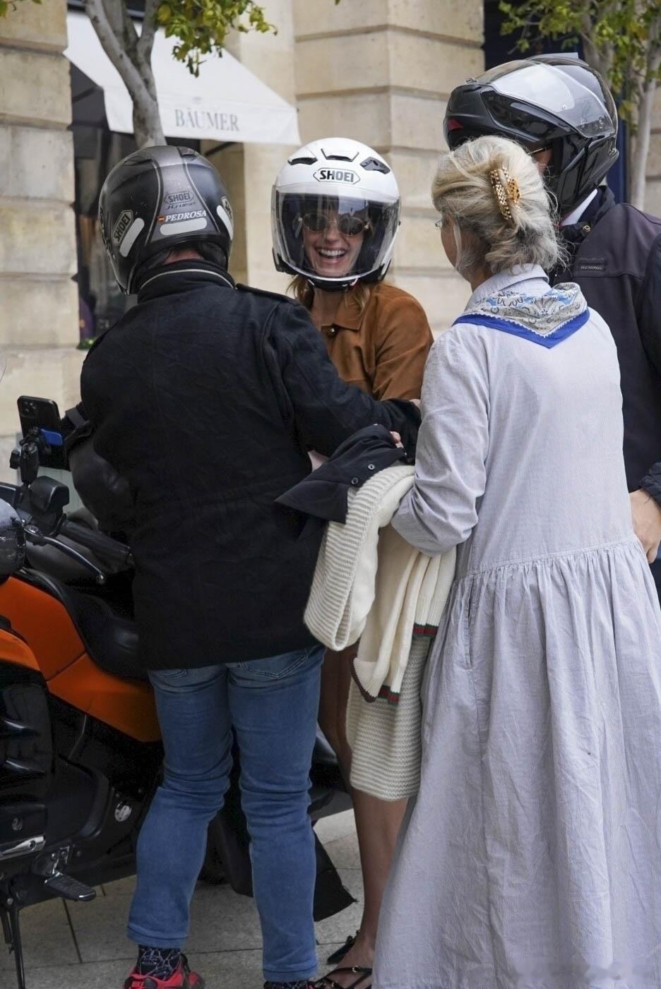 Emma Watson艾玛沃特森在巴黎外出,观看Miu Miu的大秀后戴着头盔搭着帅气的摩托车回到酒店
