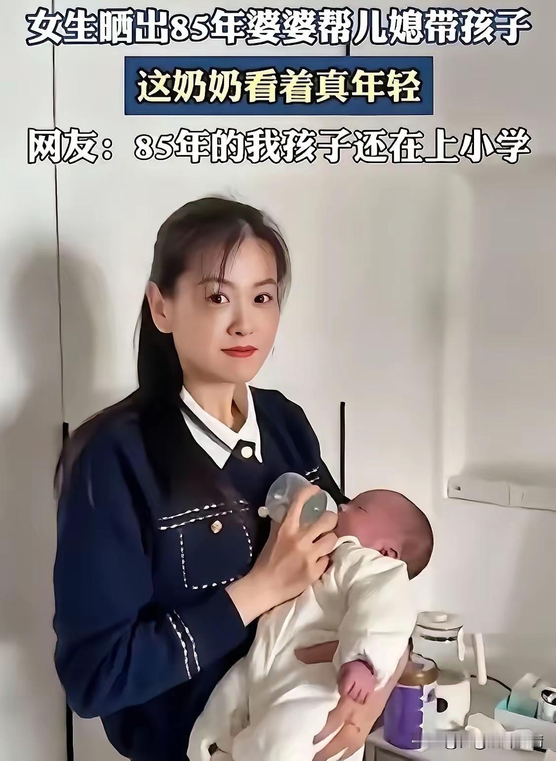 女生晒出了85年的婆婆帮儿媳带娃, 不知道的以为这女的就是孩子的妈妈, 这女的明