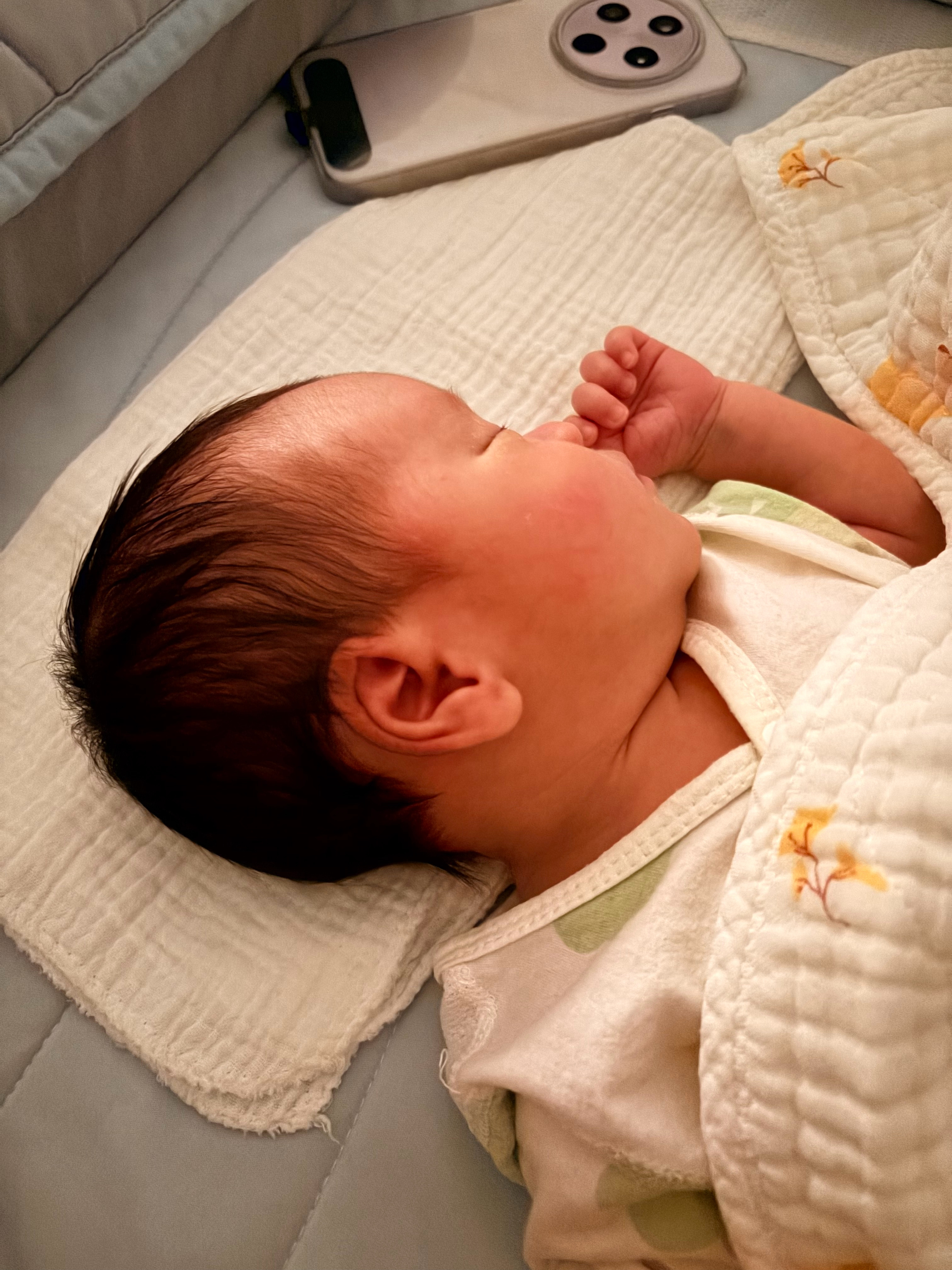 这两天睡眠都被这小家伙打乱了…亮嫂更辛苦,几乎就整晚没睡,凌晨 4 点就起床喂奶,然后他愣是玩 到 6 点,再接着睡[允悲][允悲]