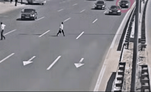 这两部小车,被过马路这个男子害的太惨了,一部车被撞翻起来,另一部车被碎