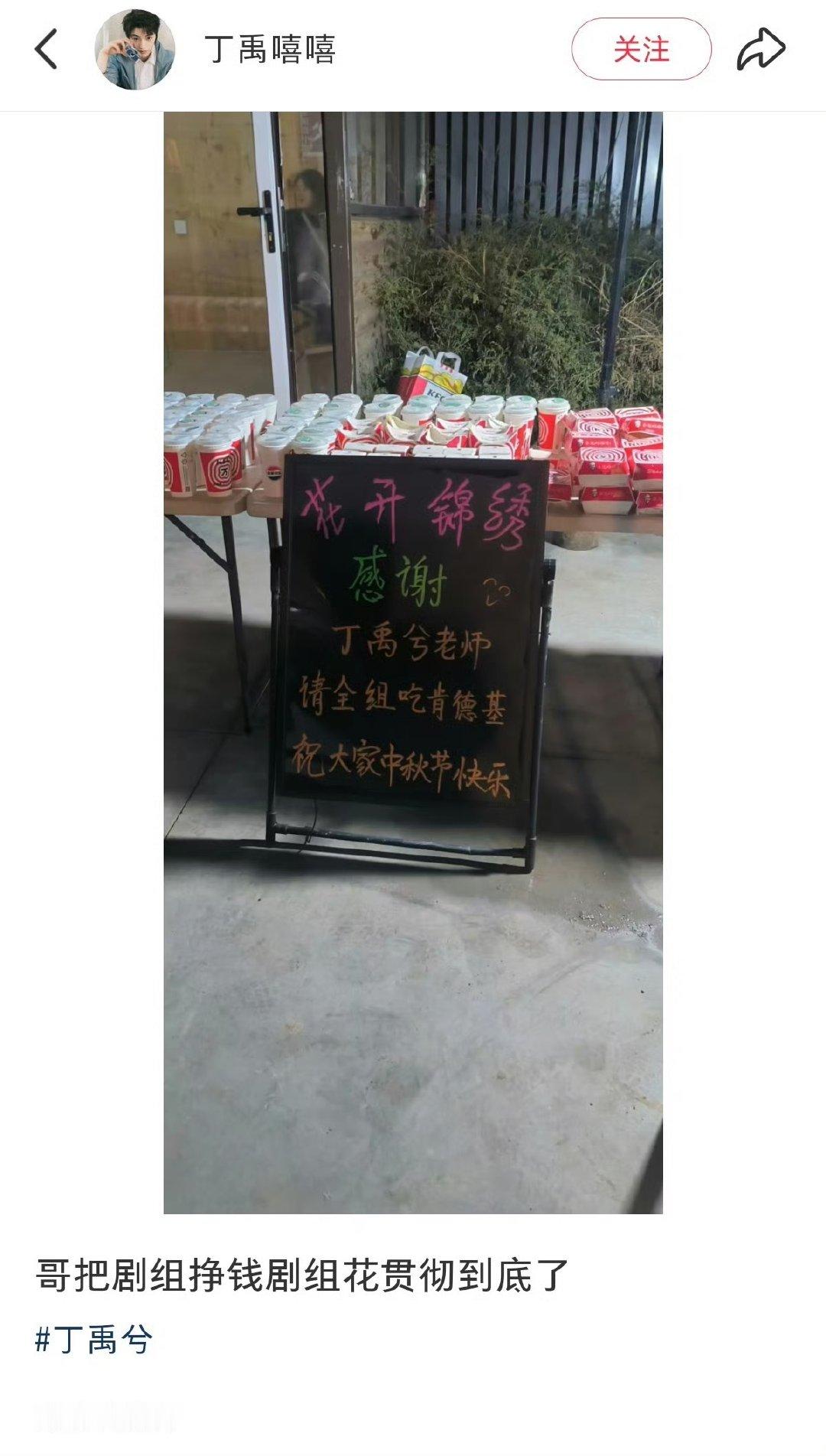 丁禹兮中秋节请客剧组丁禹兮中秋请客花开锦绣剧组花开锦绣剧组中秋被丁禹兮请客太贴心