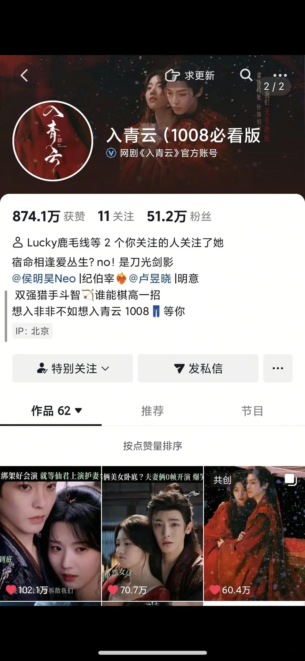 入青云的剧粉名如何?“云玩家”!剧超已破10万人!官抖也已经50万人关注了,这个数据在今年的古偶里还可以吗?