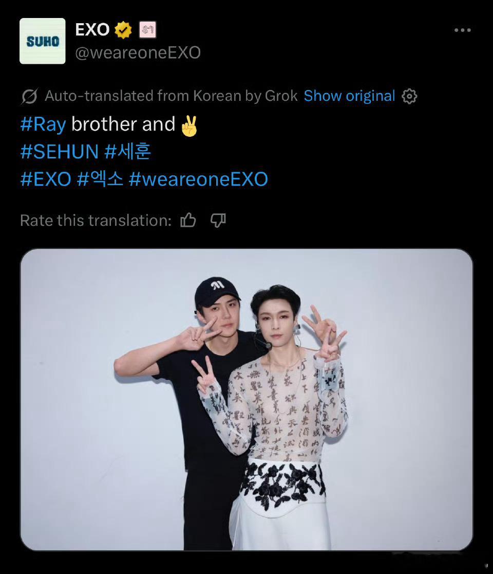 EXOAmazing!EXO官号发了吴世勋和张艺兴的合照!