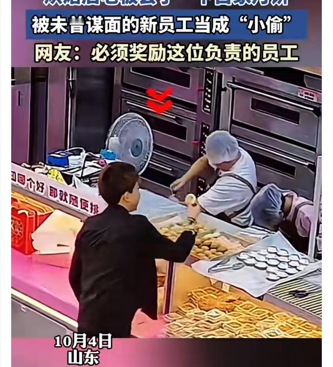 这场景想想就可乐——老板啃着自家月饼被拦在门口,新员工瞪着眼较真,活脱脱一出职场版“张飞审瓜”,老板怕是先憋笑再暖心,最后非得给这员工点个大大的赞。 你想啊,新员工哪懂什么老板的样子?在他眼里,“有人没打招呼就拿店里东西”就是该拦,这份对工作的较真劲儿,比那些混日子的“老油条”珍贵多了。烘焙店最怕什么?怕食材被偷、怕流程不规范,这员工上岗就自带“防火墙”属性,说明培训没白做,责任心更是刻在骨子里。 老板或许会先打趣“下次认认脸”,但转头肯定得在会上夸:“就该这样!不管是谁,规矩不能破。” 这哪里是乌龙?分明是给店里的安全意识上了一课——连老板都能被拦下,说明制度真落到了实处。网友说该奖励,太对了!发箱牛奶也好,加天假期也罢,都是在告诉所有人:认真干活的人,永远值得被看见。 说到底,职场里最缺的不是机灵,是这份“认理不认人”的实在。这员工用一场乌龙证明:守好自己的岗,比认得多少大人物都重要。老板要是我,非得笑着拍他肩膀:“好小子,以后店里的门,就靠你看了!”