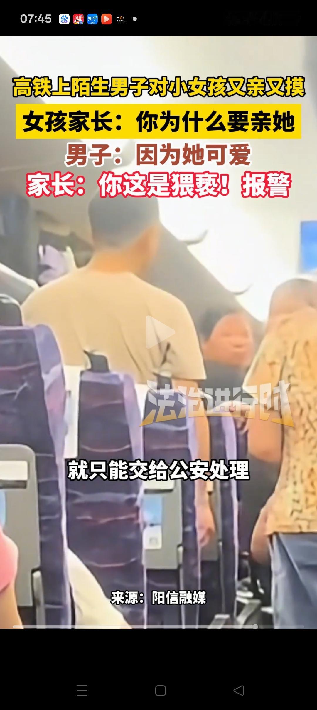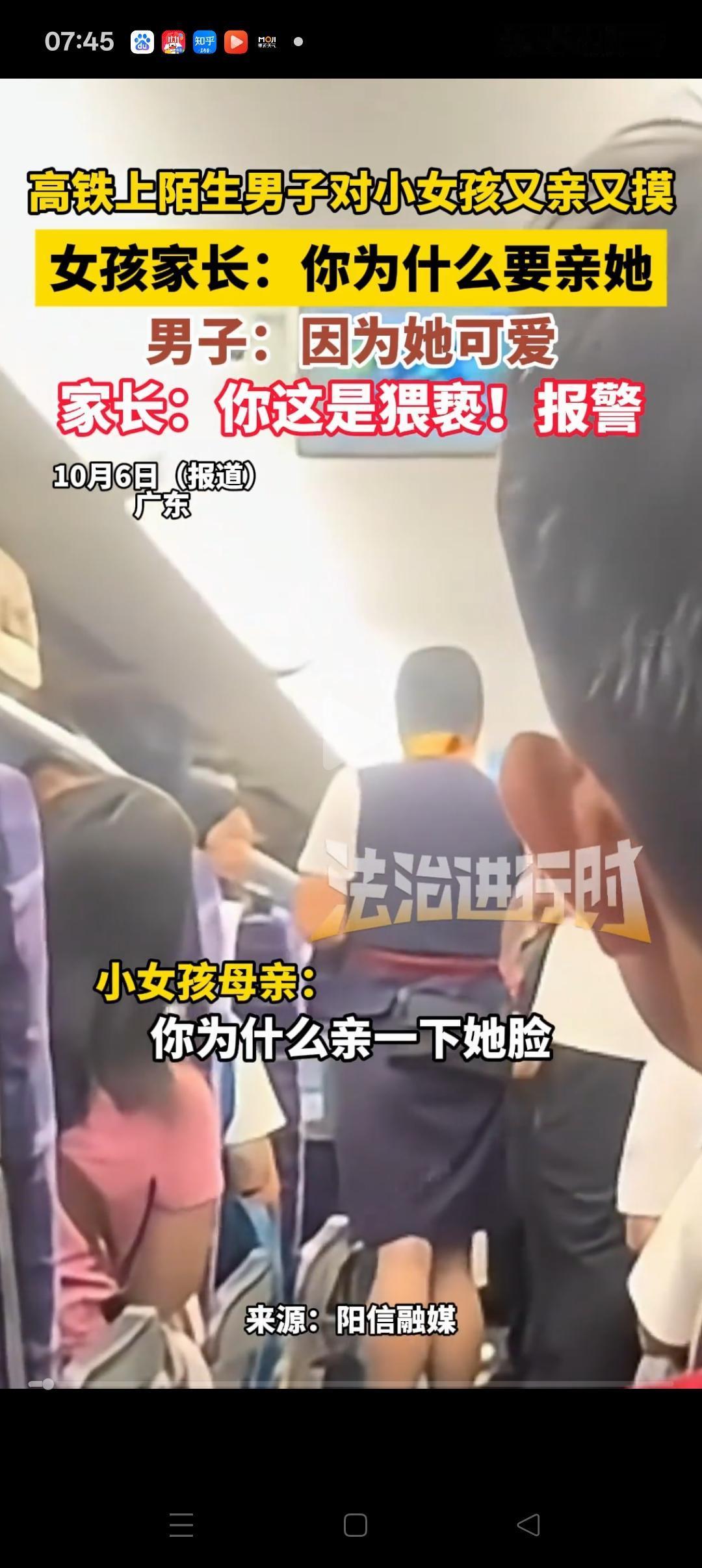 “太坏了”,广东高铁上,一陌生男子亲了一下别人家的小女孩。小女孩的妈妈很生气,质
