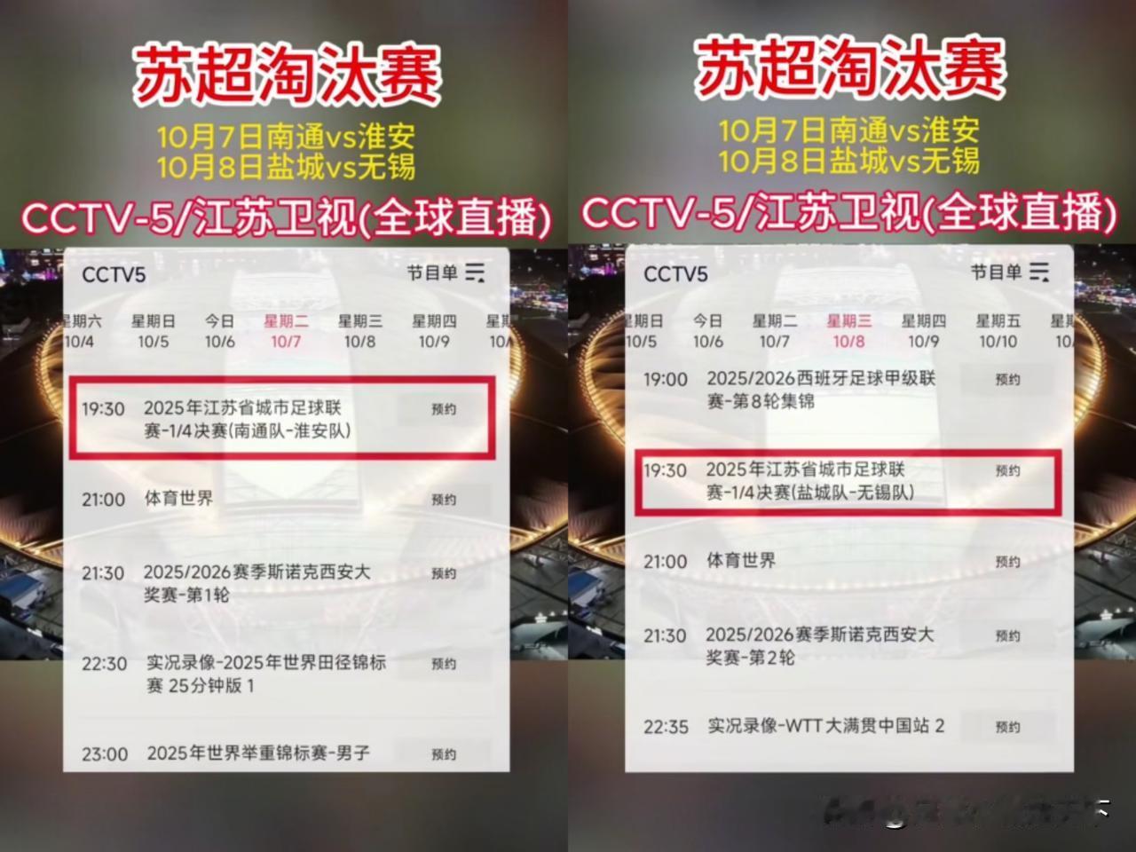 苏超也是成气候了,南通和盐城的比赛直接换成CCTV5直播了!前两场淘汰赛还是CC