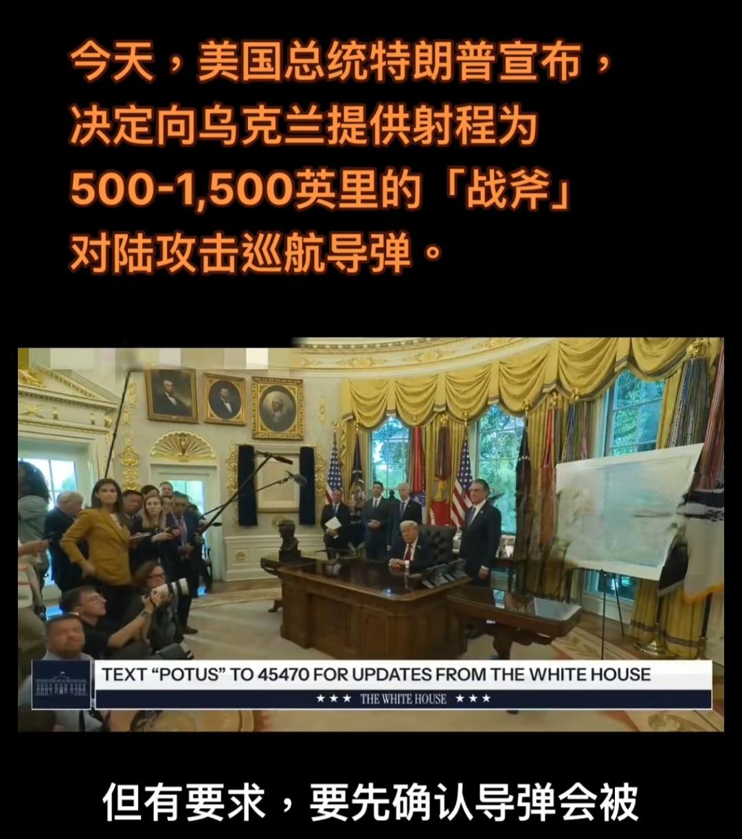 特朗普6日决定向乌克兰提供战斧导弹,已伤痕累累的俄罗斯,还能架得住几砍几劈?已气喘吁吁的局势,还能遭得住几吹几烧? 战斧,实战中打出赫赫威名的利器,当一不二的风火雷神,就要通过乌克兰之手砸向俄罗斯了,都说俄罗斯血槽厚,那让精钢板斧来试试。 七日内PJ的两次警告被特朗普直接忽略,特朗普对俄罗斯的冰冷态度比战斧对俄罗斯的热烈威胁更让PJ心寒。 特朗普对俄罗斯彻底转变了立场,能真正打破战场平衡的是美国的站位。所以美国向乌克兰提供战斧导弹,不但会摧毁俄罗斯的能源与兵工,还会摧毁俄罗斯的军心与士气。 特朗普转身,带来战斧参战;战斧参战,能带来战场转折吗?