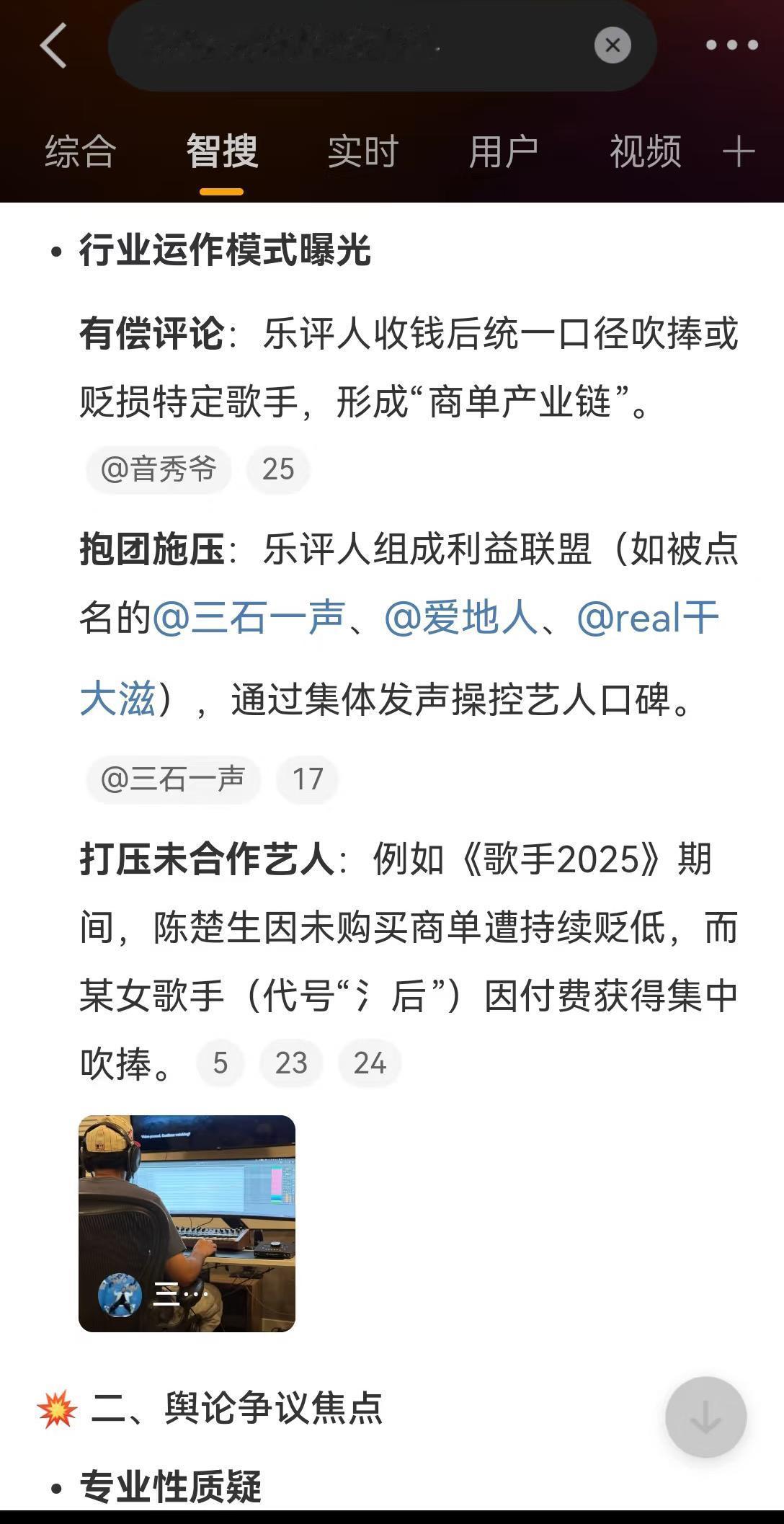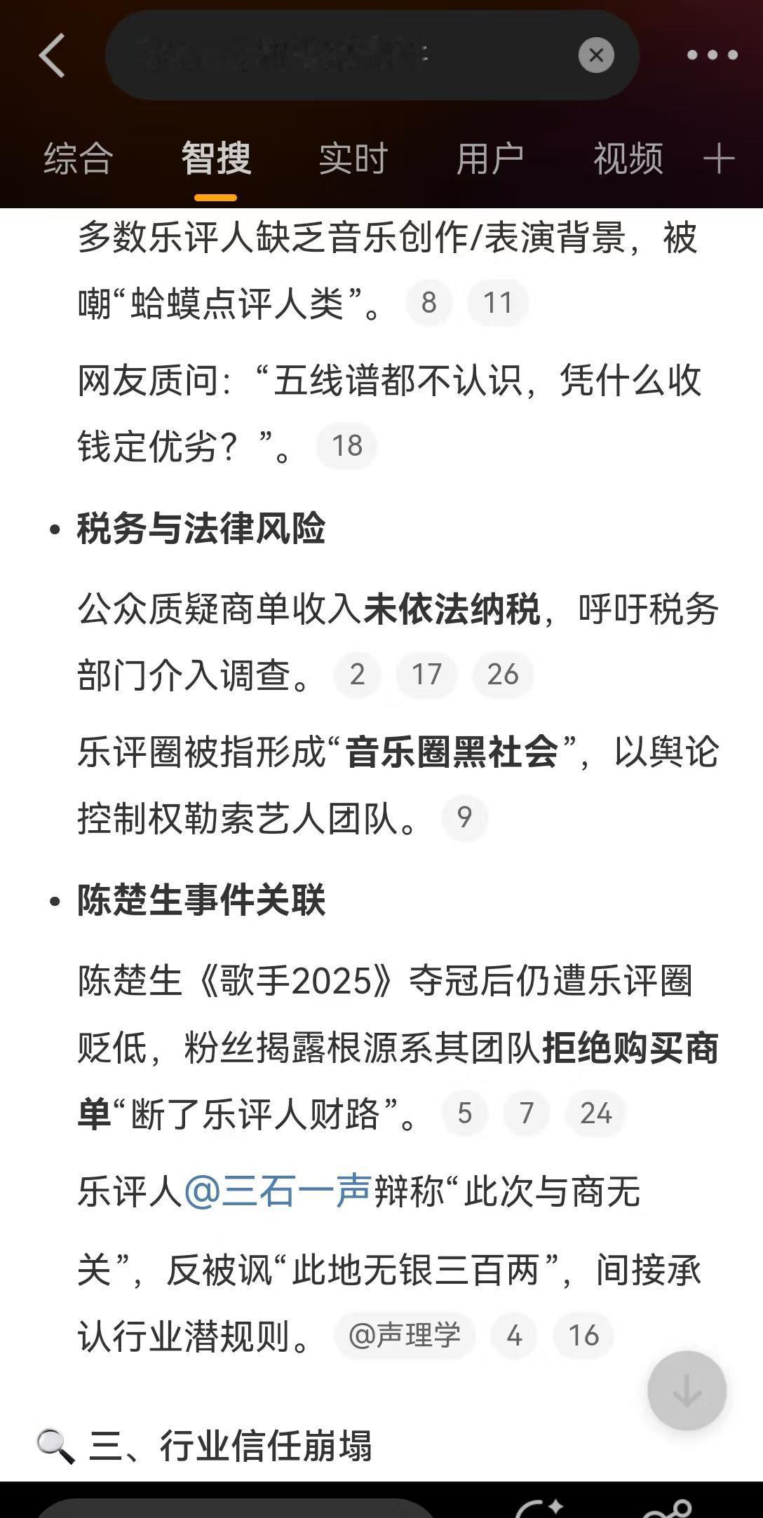 陈楚生歌手第二期后为啥会有漫天黑热搜? 原来有的乐评人真的会拿钱说话啊! 今天刷到了“乐评人商单群”事件。 太黑了。 真的就是行业潜规则—-得罪乐评圈会影响未来接商单。 简言之就是收钱后统一口径“吹”或“损”某歌手,而且他们还会抱成团,形成“众口铄金”已达“积毁销骨”之势! 现在回想起来,为啥那么多铺天盖地的恶评了……好心疼咱生哥! 希望这不是真的,希望一切都是美好的。