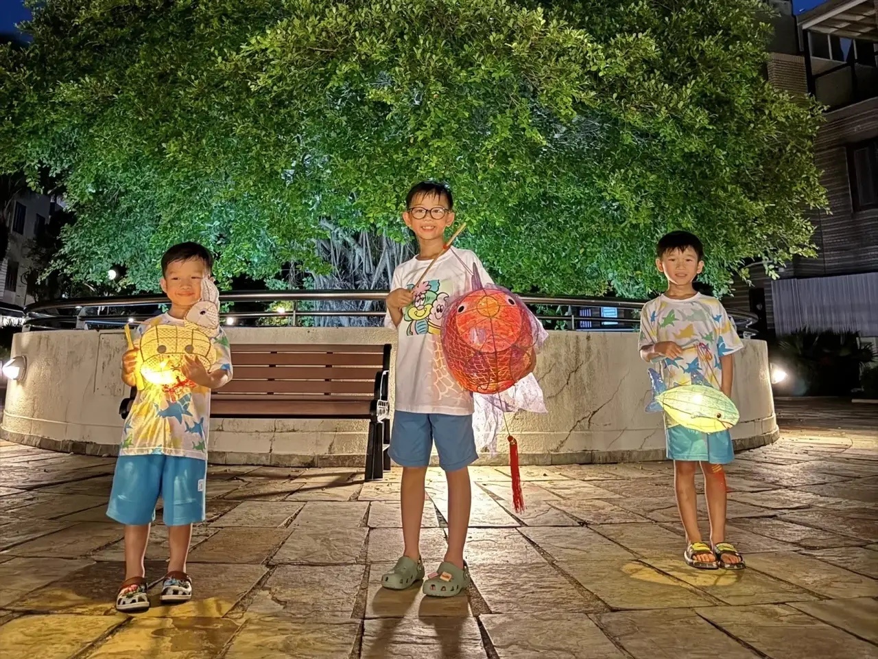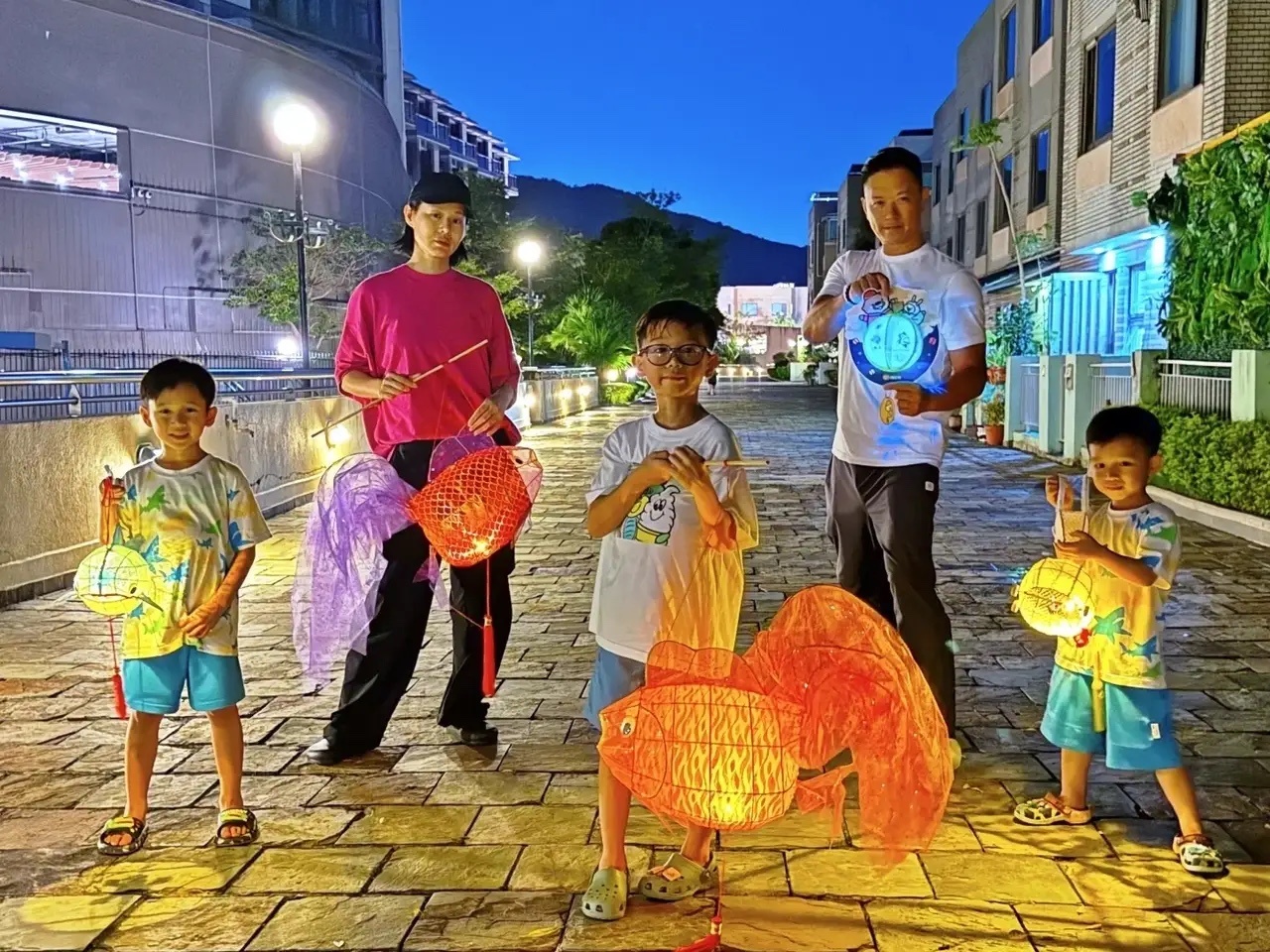 胡杏儿晒出全家过中秋,三个儿子提着灯笼,好可爱!哈哈,感觉胡杏儿把一模一样的孩子生了三遍,这三个大儿子,在夫妻俩前面一站,太拉风了!