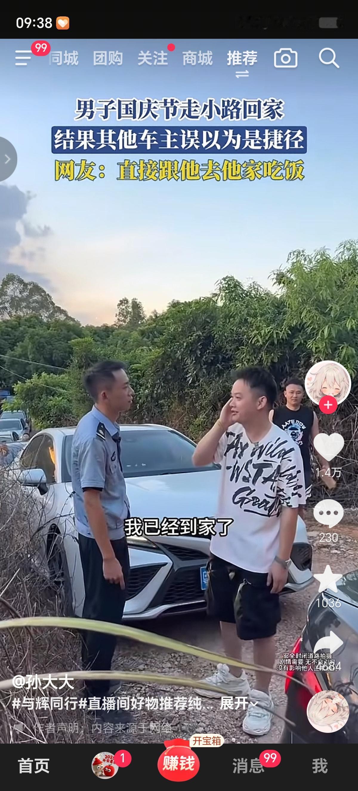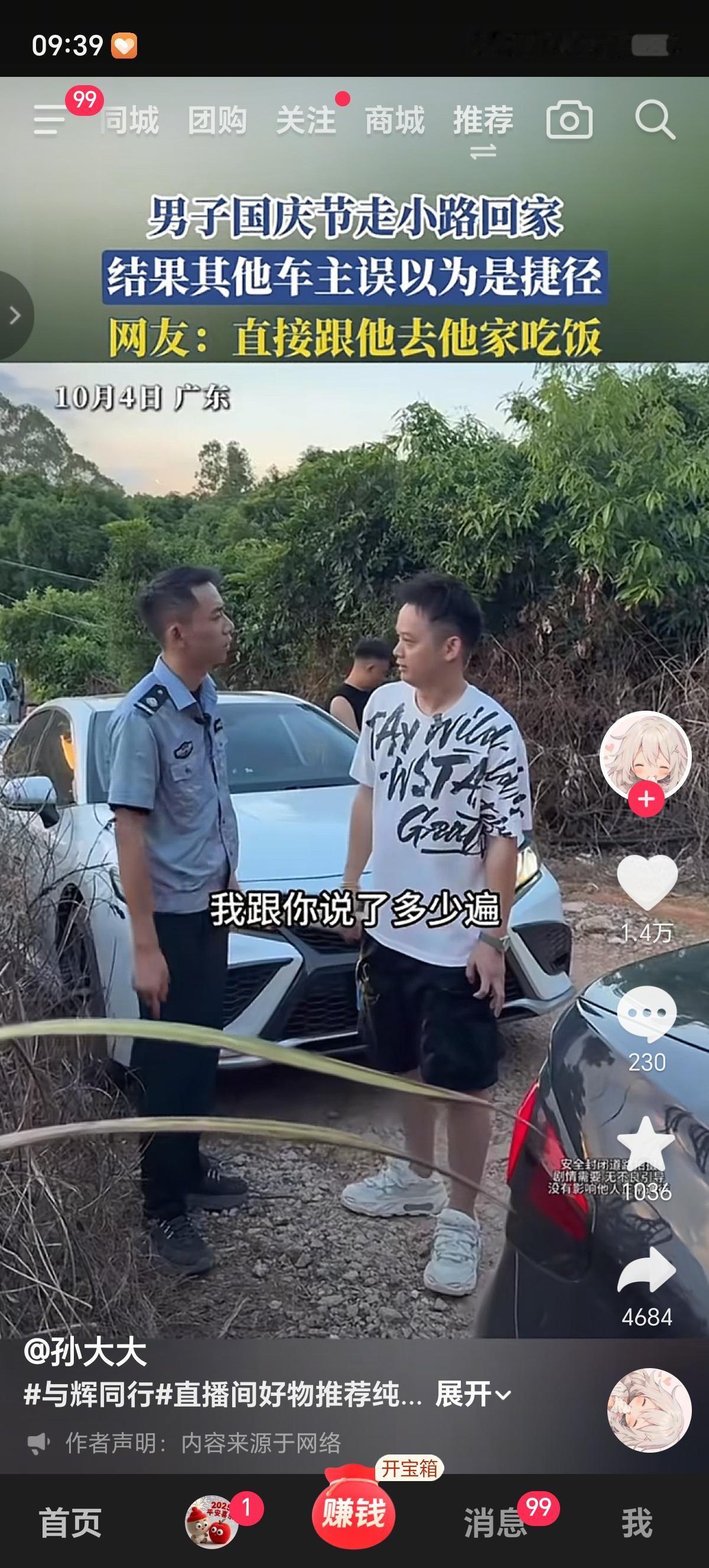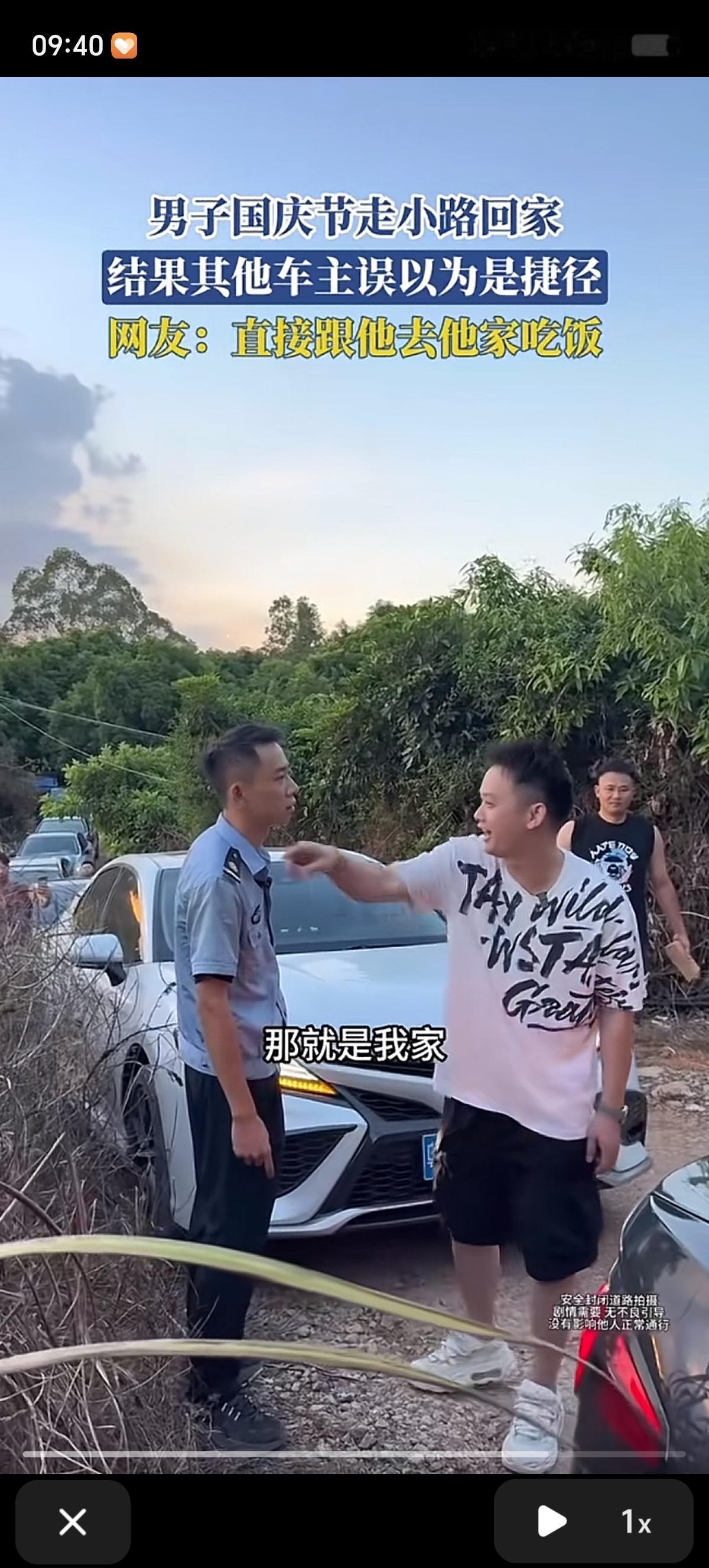 男子国庆节走小路回家引发了大事故,其他车主以为男子走捷径了,都跟着走,结果堵车了,都堵在了该男子家门口,这下都走不了了,该男子还被批评了,“说了多少次了,国庆节不要走小路”,该男子尴尬😓又委屈啊,谁能想到回个家有这么多人跟着。 小火解释不是他想走小路的,而是他家就在这啊,他已经到家了。这就麻烦了,他车在这不动,其他人也走不了,关键是这里没路了啊!也不知道这些车主得堵在这里多久才能出去,最后可能真得去他家吃饭了,就算不吃饭也得排队去他家上厕所了,无心也是他的错,跑不了他。