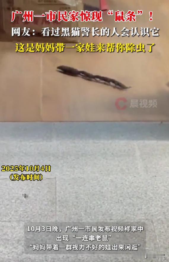 “解释不清了!”广州一女子在家休息时,突然听到桌子下有动静,她小心翼翼走过去,竟然发现了“鼠条”!一只大老鼠带着一群小老鼠,在房间里窜来窜去,她没害怕,而是第一时间将这一幕拍下,发网上求解这是什么情况?结果网友却说:看过黑猫警长的人都认识它,这是妈妈带一家娃来帮你除虫了! 最近广州有个女士的经历特别有意思,用她自己的话说就是 “真是解释不清了!”本来在家好好休息,结果桌子底下一阵响动,扒开一看,好家伙,一串 “小毛球” 在窜,吓得她先愣了几秒,反应过来反而掏出手机拍了照,发网上问 “这到底是啥?” 那天她好像是周末在家,窝在沙发上刷手机,突然听见客厅桌子底下有窸窸窣窣的声音,一开始以为是蟑螂或者小虫子,没太在意。 可那声音越来越明显,还带着点 “窸窸窣窣 +小爪子扒地” 的动静,她才觉得不对,蹑手蹑脚走过去,蹲下来往桌子底下一看,瞬间有点懵,一只比拳头小点儿的 “大的” 在前头走,后面跟着五六只更小的,一个个紧紧跟着,看着就像一串会动的 “鼠条”,在地板上慢慢窜来窜去。 她当时第一反应是 “家里怎么进老鼠了?还带着一窝崽?” 可再仔细看,又觉得有点不一样,这些小家伙看着比普通老鼠更圆乎乎的,毛也更软,而且走得特别有规矩,不是瞎窜,反而像跟着 “领队” 走。 她也没敢惊动它们,赶紧拿手机从侧面拍了段视频,发在网上,配文说 “家人们谁懂啊!桌子底下发现一串‘鼠条’,大的带小的,这是啥情况?要赶紧找灭鼠的吗?” 没想到帖子发出去没一会儿,评论区就炸了,好多网友都留言说 “这哪是老鼠啊!看过《黑猫警长》的都认识,这不就是类似‘搬仓鼠’那种,是来帮你家除虫的!” 还有人更具体地说 “这叫鼩鼱(qújīng),不是老鼠专吃蟑螂、白蚁这些害虫,对你家粮食、电线啥的都没兴趣,是好东西!” 她看着评论一开始还不信,心想 “长得跟老鼠差不多,怎么会是帮除虫的?” 结果翻了几条长评论,有网友特意找了鼩鼱的图片对比,还说 “你看它们牙齿,是尖的,不是老鼠那种大门牙,就是用来咬虫子的,而且新陈代谢快,一天能吃自身体重一半的虫子,你家要是最近蟑螂少了说不定就是它们的功劳!” 这话一下点醒了她,好像从上个月开始,家里确实没怎么看见蟑螂了,之前还以为是自己买的蟑螂药管用,现在一想说不定真是这些小家伙在帮忙。 她又回头看了看视频,发现那只 “领队” 的大鼩鼱,走几步就会停下来,回头张望一下,好像在等后面没跟上的小的,看着还挺有 “妈妈范儿”,一点没有老鼠那种慌慌张张、到处乱啃的样子。 后来还有网友跟她科普,说鼩鼱幼崽视力不好,所以会跟在妈妈后面,有时候还会咬住前面同伴的尾巴走,就是怕走丢,这种 “列队行军” 是它们的习性,不是要 “占领地盘”。 还有人说以前也误会过,把鼩鼱当老鼠赶,后来才知道是益虫,“长得像老鼠真是它们最大的‘锅’,其实特别温顺,还帮着除害虫,比杀虫剂环保多了。” 她看完这些彻底放下心来,不仅没找灭鼠的,还特意在客厅角落放了一碗清水,想着万一它们渴了能喝,过了两天她再看,那碗水少了点,桌子底下也没再看见 “鼠条” 队伍,估计是带着小的去别的地方找虫子了。 她还在网上更新了后续,说 “原来真是‘编外保洁’上门了,之前还以为是麻烦,现在觉得还挺可爱的,以后再遇到这种小家伙,肯定不慌了。” 好多网友看了后续都评论说 “这才是人与自然和谐相处嘛”“多亏你没直接赶,不然就错怪好邻居了”。 现在这位女士还总跟朋友说 “真是解释不清了,一开始以为是老鼠,结果是除虫小能手,还得谢谢网友们的‘黑猫警长’回忆杀,不然我都不知道自己差点错怪‘功臣’!” (信息来源:潇湘晨报——广州一市民家中惊现“鼠条”!网友:看过黑猫警长的会认识,这是妈妈带娃来帮你除虫了)
