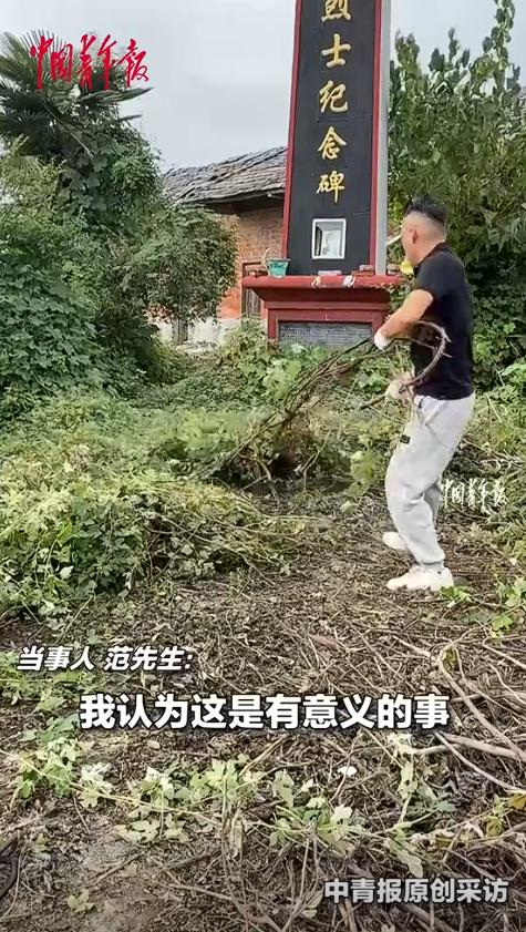 积大德了!9月30日,湖北荆州,一男子开车路过当地一村庄时发现一座烈士纪念碑,出于对烈士的敬仰之情,他决定上去拜祭一下,可走近后发现这座烈士纪念碑前长满杂草无从下脚,于是他做了一个大胆的决定! 乡间小路上,有个男的开车路过村子,突然瞅见路边立着块石碑,那是烈士郭章清的纪念碑,可眼前的景象,一下就让他红了眼。 半人高的杂草疯了似的长,藤蔓裹得碑身严严实实,连往碑前走的小路都被吞得没影了,别说过来祭拜,想找个下脚的地儿都难。 后来这男的接受采访时说:“看到那一幕心里堵得慌,今天可是烈士纪念日啊,他们不该被这么忘了。” 他没半点犹豫,立马掉车头停车,从后备箱翻出平时割草用的镰刀和小铲子,往碑前一蹲就开始清理。 正午的太阳晒得人冒汗,他却顾不上擦,先小心翼翼割掉缠在碑字上的藤蔓,再一点点把碑前的杂草连根铲起。 草根混着泥土粘在手上,裤脚被露水打湿,他始终低着头,动作轻得像怕惊扰了长眠的烈士。 路过的村民一开始还以为,他是村干部派来打扫的,后来才知道,这人就是偶然经过的陌生人,连纪念碑上郭章清烈士的名字,之前都没怎么听过。 他擦了擦额头上的汗,把清理出来的杂草堆到一边,又从车上拿了包纸巾,仔仔细细把碑身上的灰尘擦干净,嘴里还念叨着:“英雄哪能被草遮住呢。 等他把纪念碑前的杂草一点点清干净,终于露出条能走到碑前的整洁小路时,阳光正巧洒在 “郭章清烈士 永垂不朽” 这几个字上,金灿灿的特别显眼。 他站在碑前深深鞠了三躬,才默默收拾好工具开车离开。 这一幕被村民拍下来发到网上,短短几小时就刷屏了,评论区里,有人说:“他弯腰除草的样子,比任何献花仪式都更动人!” 有人感慨:“纪念日的鲜花会谢,但这份发自内心的敬意不会!” 更有人反思:“我们总说缅怀先烈,可连纪念碑的杂草都要靠陌生人清理,是不是该做得更多?” 其实,这座被杂草掩盖的纪念碑,更像一面镜子,照出了有人把 “缅怀” 挂在嘴边,也照出了有人用镰刀把敬意刻进行动里。 这男的或许之前不认识郭章清烈士,可他每弯腰除一次草,每擦一下碑上的灰,都比任何华丽的悼词,更懂 “永垂不朽” 到底有多重。 如今,纪念碑旁边的杂草说不定还会再长,但只要还有人像他这样,愿意为英雄停下脚步、伸出双手,先烈的荣光就永远不会被淹没。 毕竟,真正的纪念从不是一年一次的仪式,而是藏在每个普通人心里的 “不敢忘”,是让英雄的名字,永远清晰地留在我们走过的路上。 对此,你有什么看法呢?