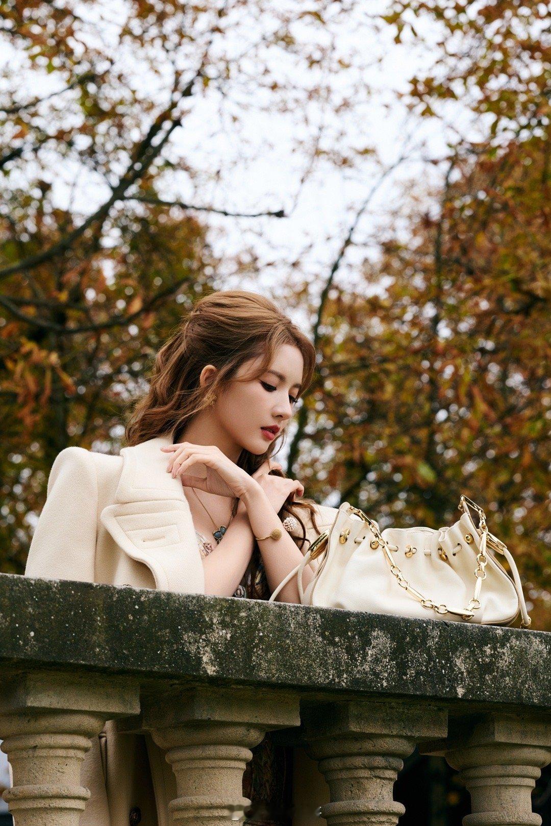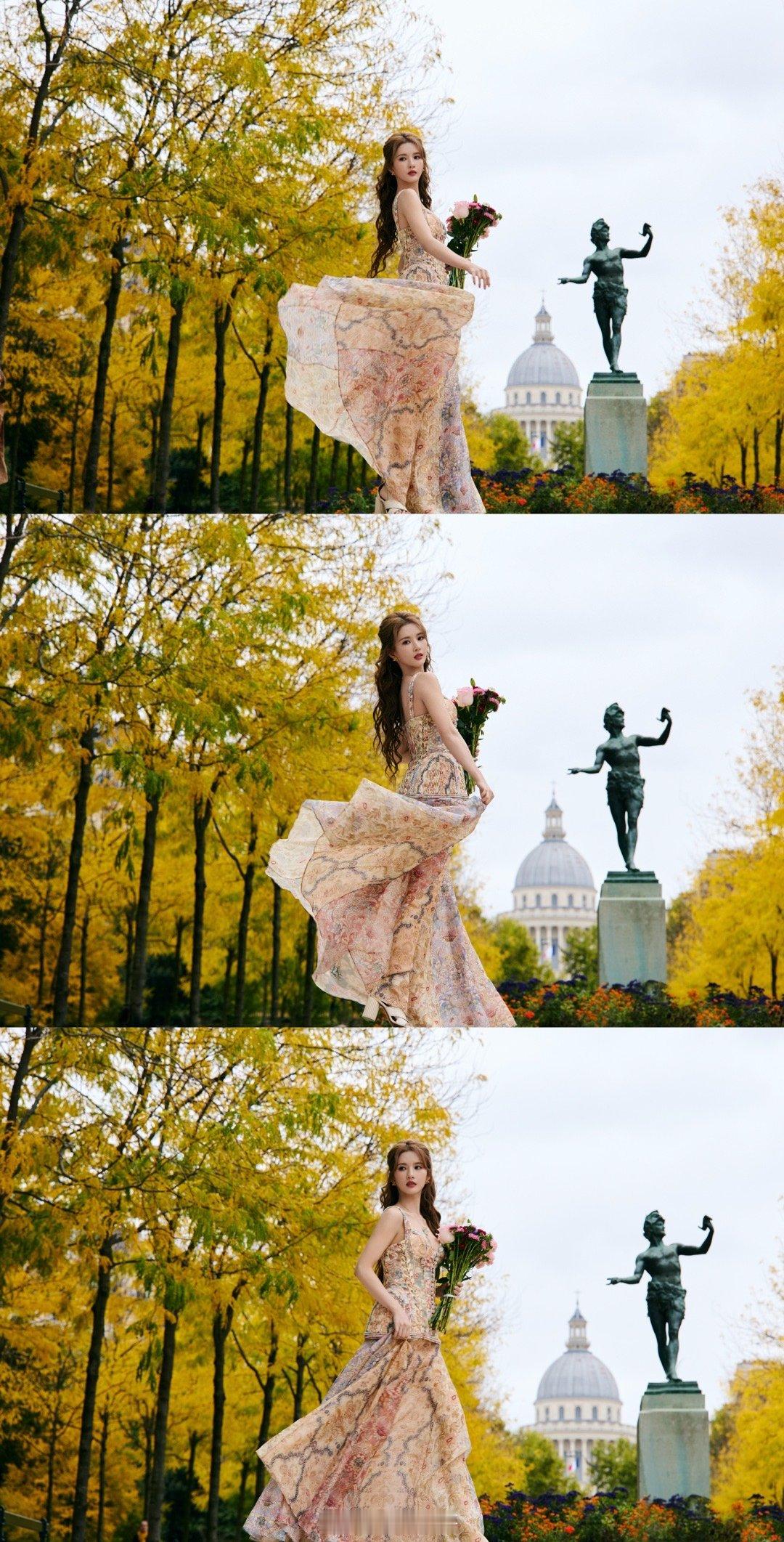 刘些宁秋日油画里走出的美人 刘些宁在巴黎时装周,宛如从秋日油画中轻盈步出的仙子。阳光洒落,落叶轻舞,复古长裙摇曳生姿,每一帧都似诗画,美得让人心醉神迷。