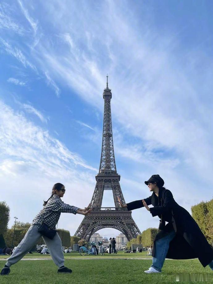 孙俪带小花推巴黎铁塔孙俪小花与巴黎铁塔合照看孙俪带小花推巴黎铁塔,从一个人的搞怪到两个人的互动,这么多年过去,她还是这么会玩,小花也太有默契了~