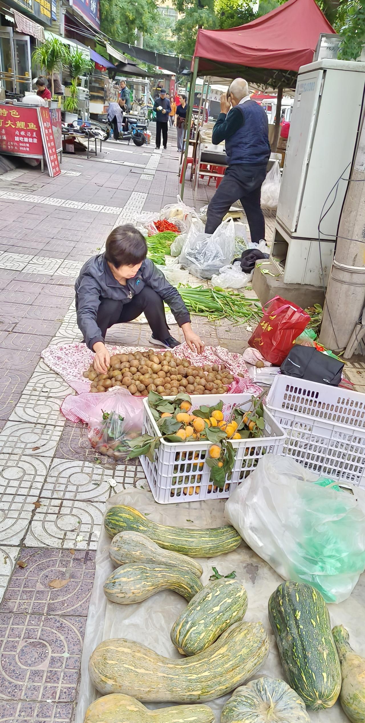 假日的农贸市场人流不是很多,可见城里人过节意识还是强烈,农贸市场里农村人带来自已葡萄3元一斤,南瓜1块钱一斤,红苕2元一斤,白萝卜8毛一斤,红皮园萝卜,山里的板栗子5元一斤,芋头,生柿子5毛一斤,山里的西红柿3元一斤,看到現饹的油馍不错,主人笑嘻嘻的说,"把我也拍上",拍后给油馍主人竖拇指点赞!总之感觉农贸市场物品丰富,价格合理,咱是来掌眼的,没有买农产品的主因是带着不方便。#农贸市场街景# #农贸市场物价# #农村人菜市场# #菜价市场# #农贸市场实景# #蔬菜水果市场# #农贸批发市场# #农村水果市场# #百姓农贸市场#