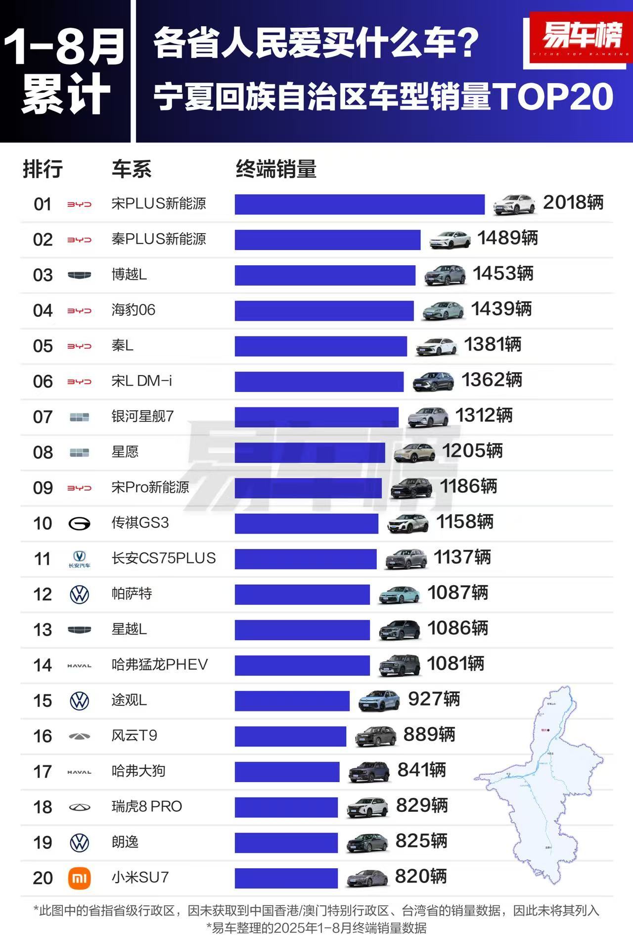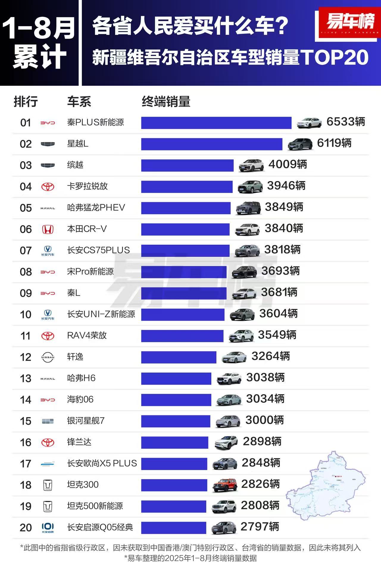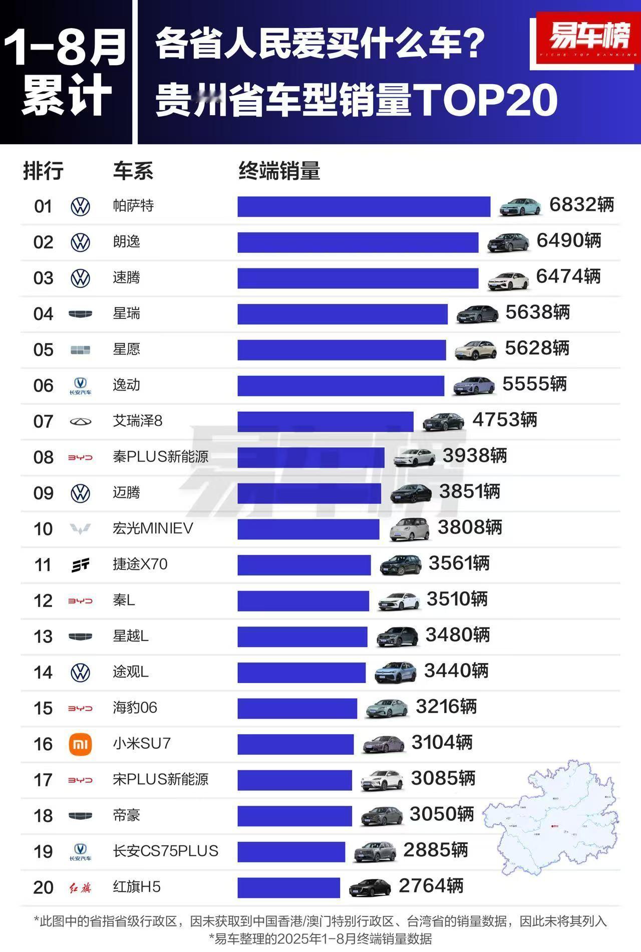 有没有很意外?各省人民都爱什么车?1-8月份分省车型销量汇总(上)大v聊车