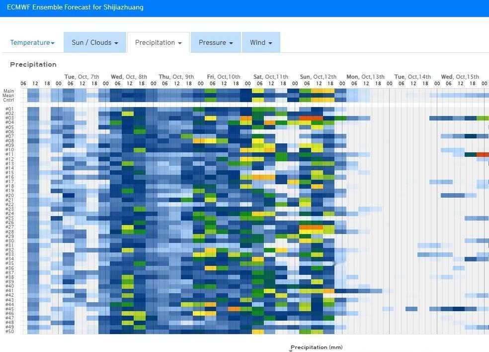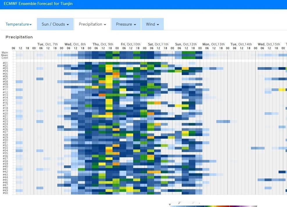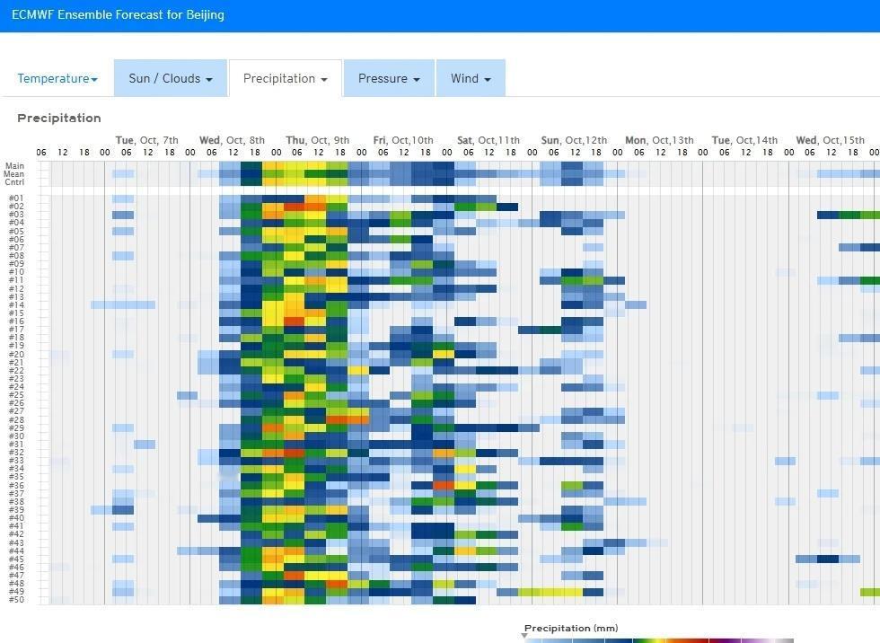 10.6-18:20 恭祝各位中秋佳节阖家团圆,万事如意![作揖] 北京城区:今夜到8号中午,有雨的可能性不大,8号下午到10号有持续性降雨。 石家庄市区:今夜有雨的可能性不大,明天上午间歇性小阵雨,明天下午到夜间小概率会有阵雨,8号到10号有持续性降雨。 天津市区:今夜到8号中午,有雨的可能性不大,8号下午到10号有持续性降雨。 未来三天:北京城区风力不大,石家庄市区8号中午到9号中午有明显偏北风,天津市区8号全天、9号全天有较大东北风。 运动建议:京津今夜到明天白天都比较适合户外运动,石家庄今晚和明天下午到夜间较适合户外运动。 京津冀其他区域今夜20点到明晚20点降雨状况可以大致参考一下图一。 图二到图四分别为北京城区、石家庄市区、天津市区近期EC模式降雨散点图。 PS:各位京津冀的朋友,8号早上出门,不管你感觉如何,请把外套带上,怕冷和体弱的朋友带上薄羽绒或抓绒类衣物。 再PS:今日到13日早上8点,京津冀累计降雨量的大致数据可以参考一下图五。