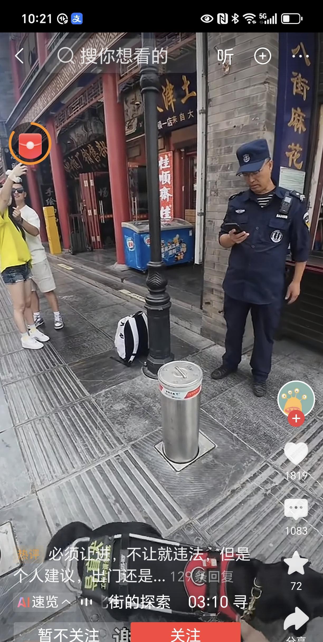 两位盲人在天津踏入一条古香古色的街道时,被保安拦下。这两名盲人解释道:“我们这两