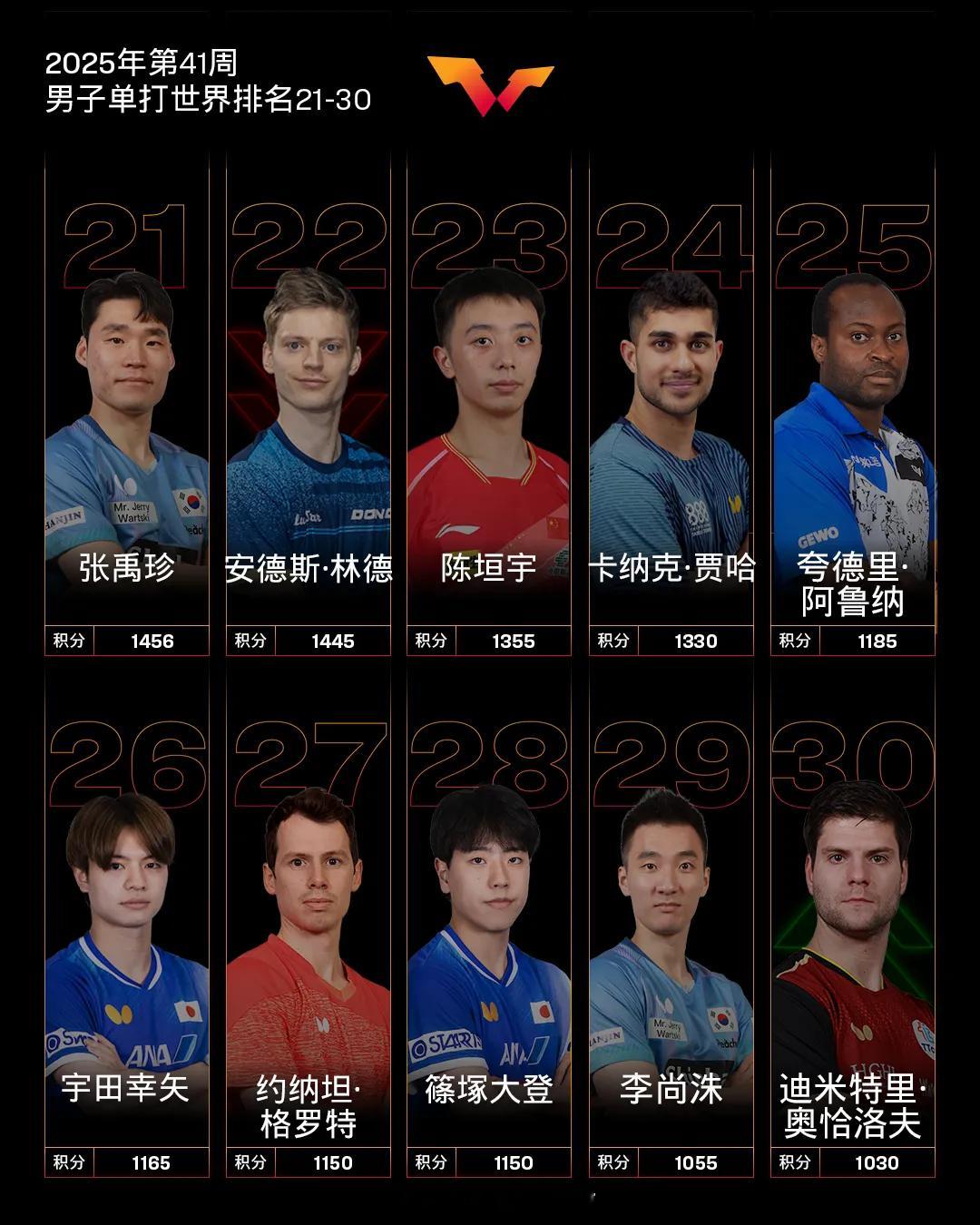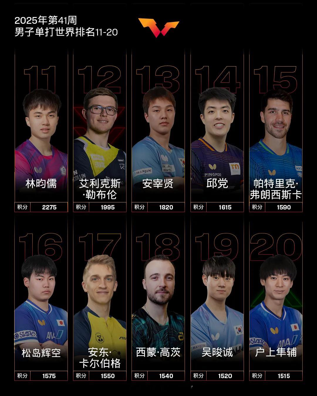 陈俊菘男单世排创新高国际乒联2025第41周排名体坛风云[超话]