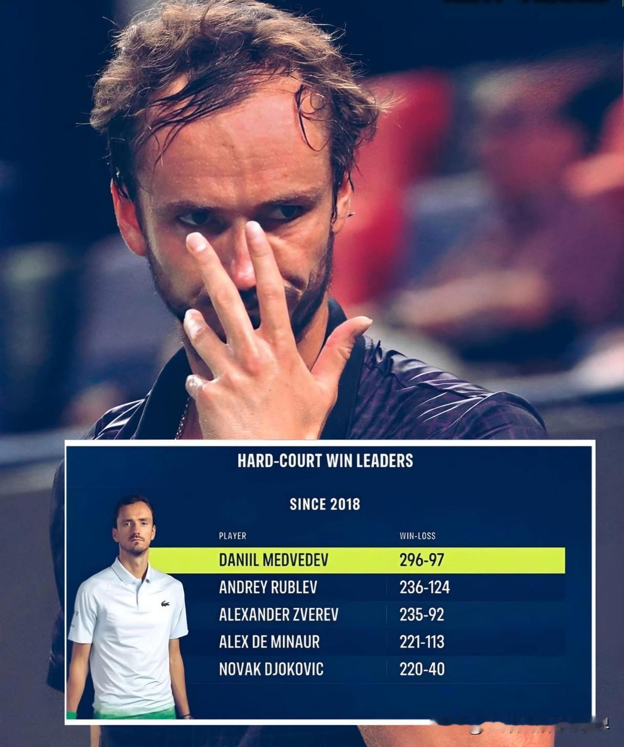 从2018年至今ATP硬地胜场球排行: 1、🇷🇺丹尼尔·梅德韦杰夫296胜