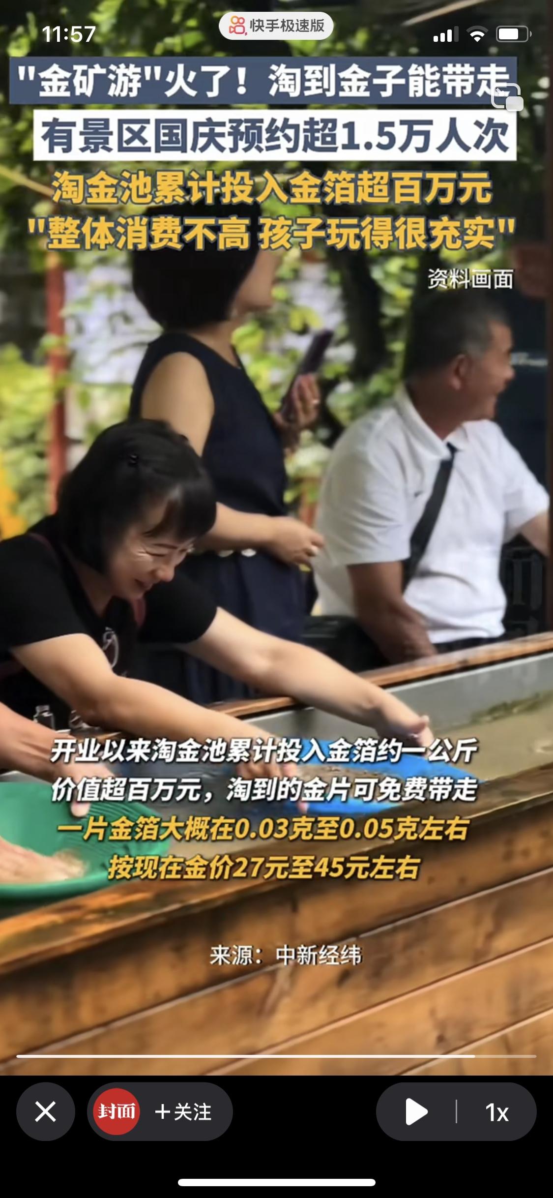 “淘金热”火了,不止是因为黄金价格猛涨,更是因为金矿景区会营销,能寓教于乐的同时还能“刮彩票”。 有些淘金景区甚至还是个正在工业开采的活矿,一个游客花上一百多元,就能坐着复古小火车进矿洞和参观黄金博物馆,感受从古至今一脉相承的采矿历史。还能在淘金体验区,亲手筛洗矿砂,感受淘洗黄金的乐趣。 虽金豆和金箔是景区自己放入其中的,但体验到的淘洗方法是真实的,而且淘到的小金子和金箔是可以带走的,像极了“刮彩票”…… 虽不知道这种热度能持续多久,但这种“变废为宝”的做法本身就值得推广。