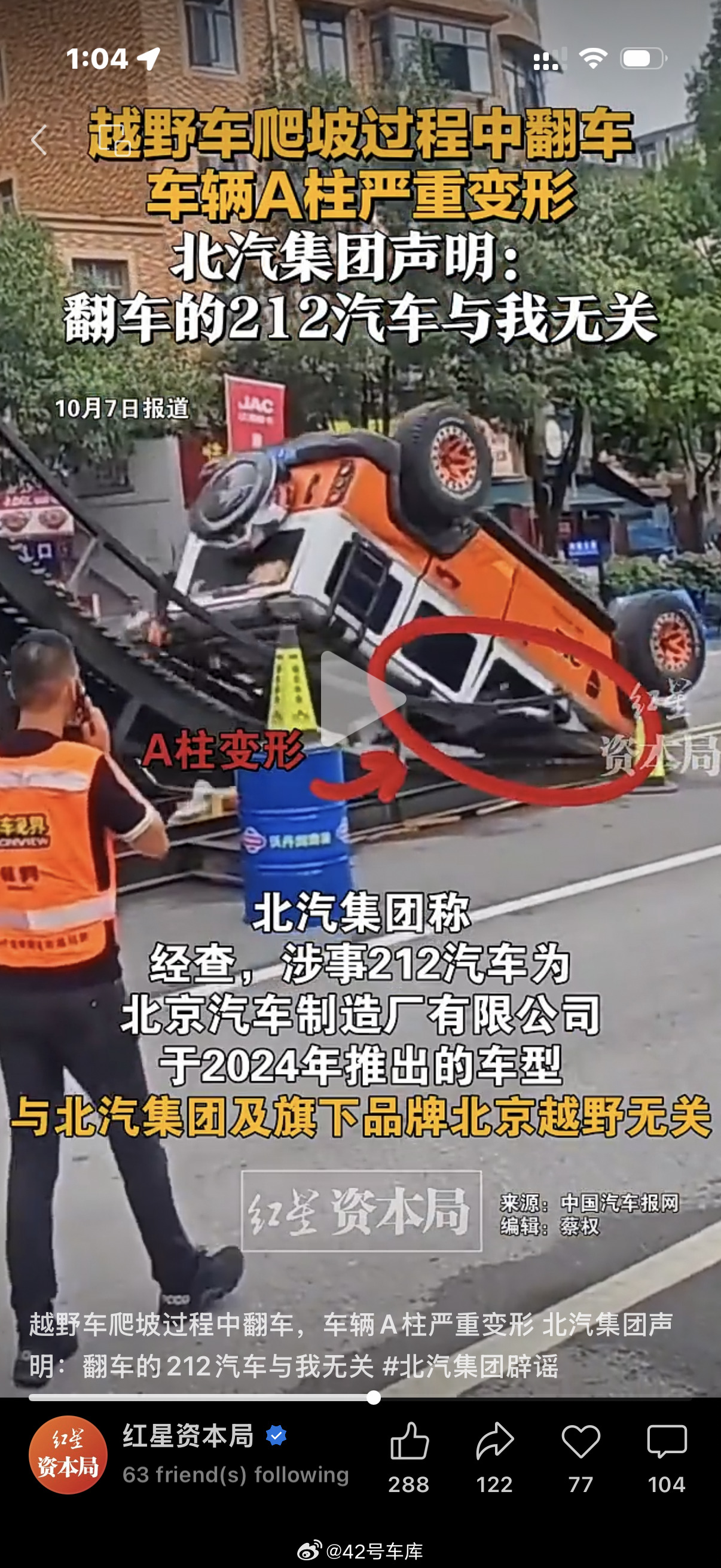 42how北汽集团发布澄清声明回应爬坡翻车 ​​​