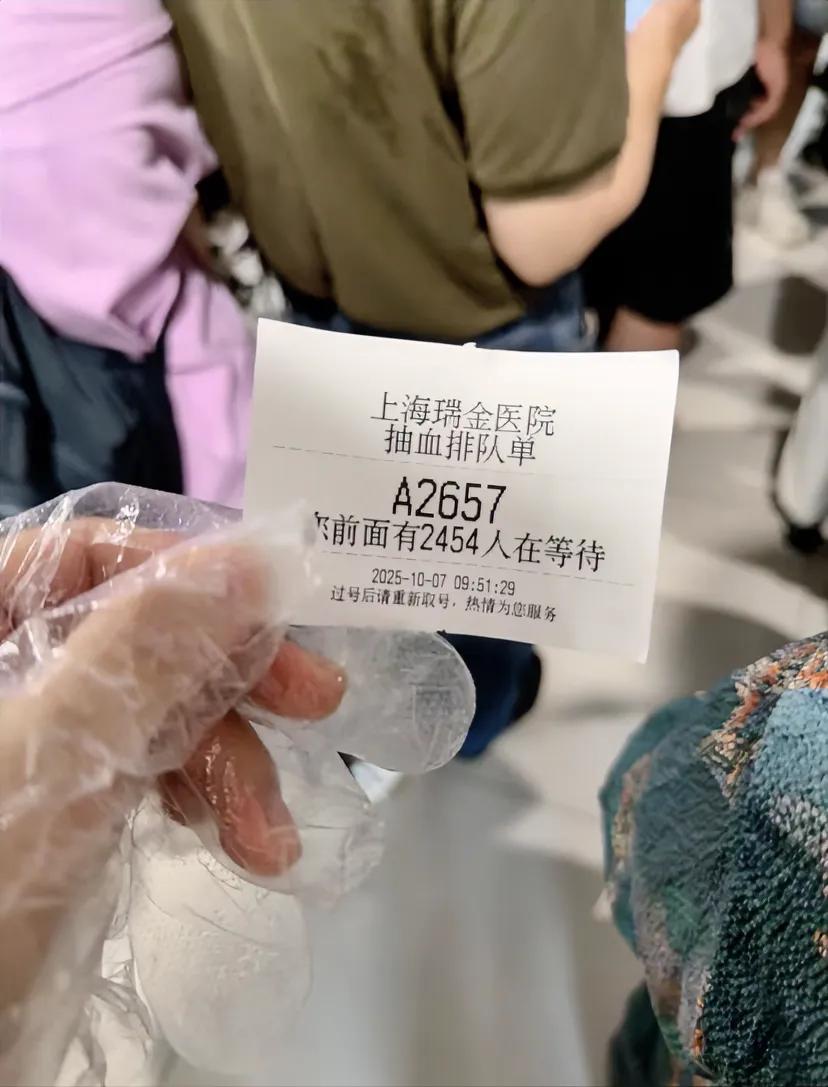 网友爆料,来看看上海瑞金医院,今朝10月7号抽血排队现状! 前方排队2454人……[尬笑] 城市观察员